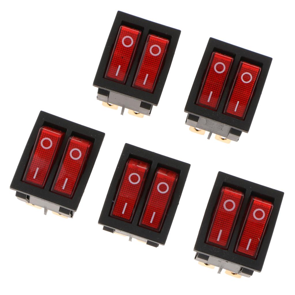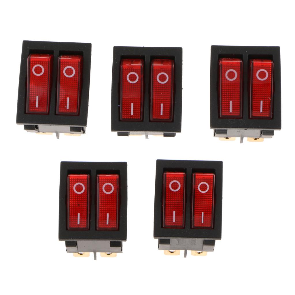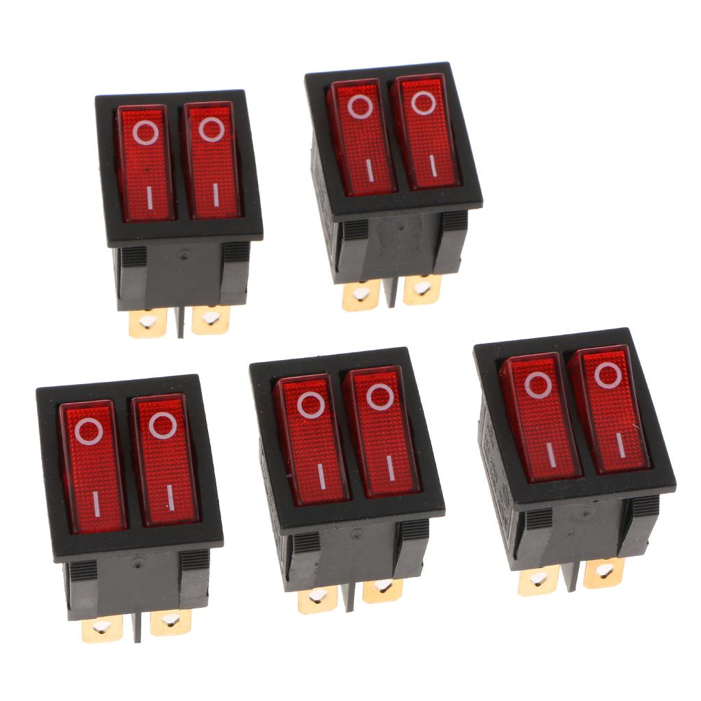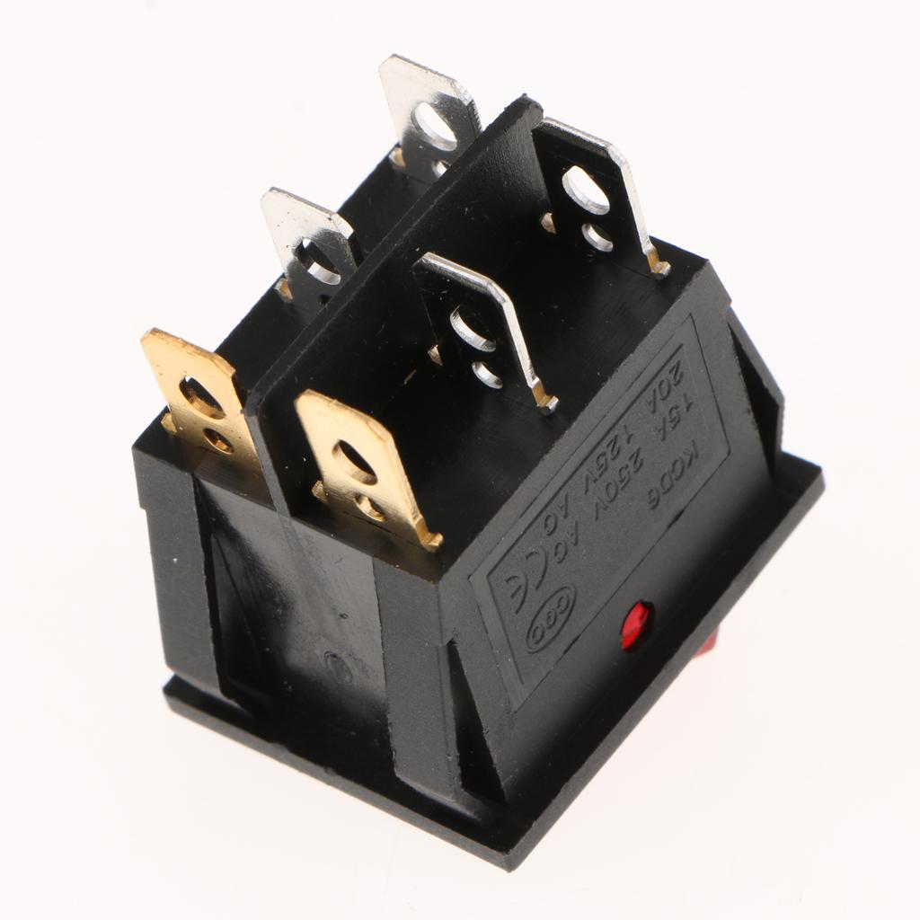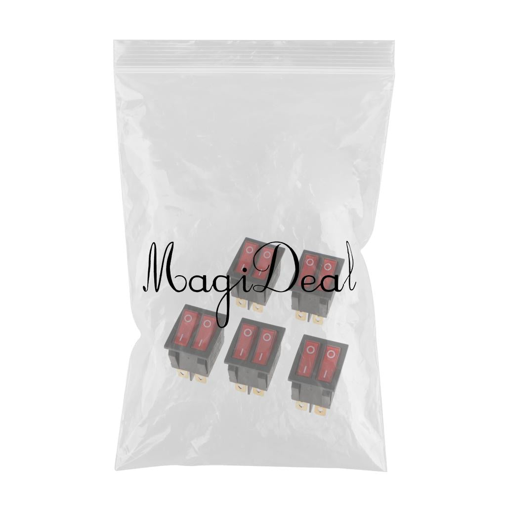 5 Pieces 6Pin 15A250V 20A125V Red Button ON/OFF Double Rocker Toggle Switch
