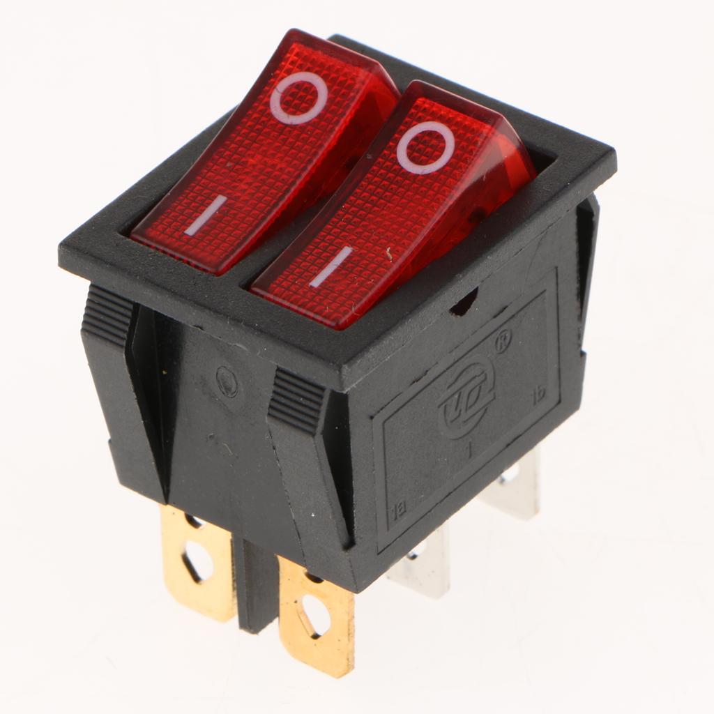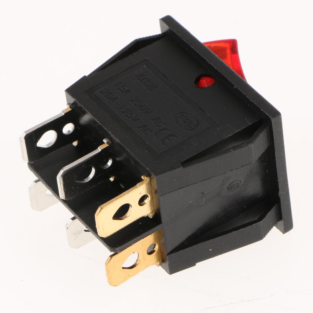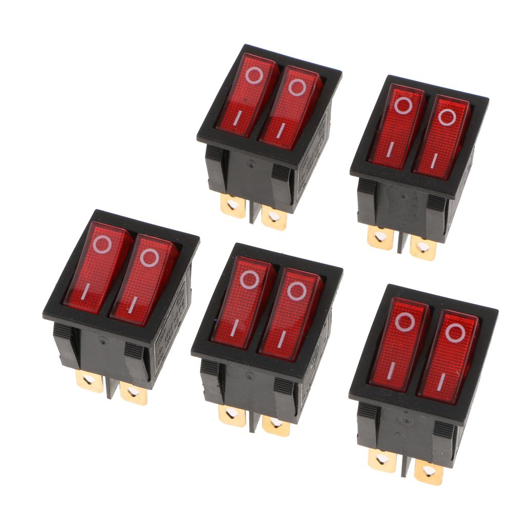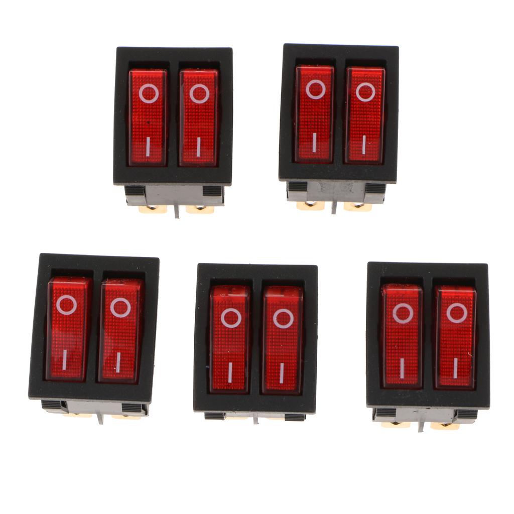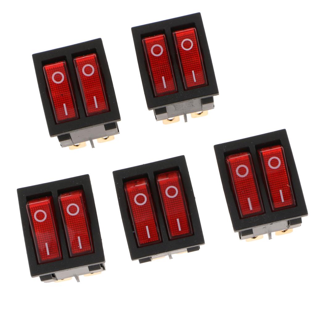 5 Pieces 6Pin 15A250V 20A125V Red Button ON/OFF Double Rocker Toggle Switch