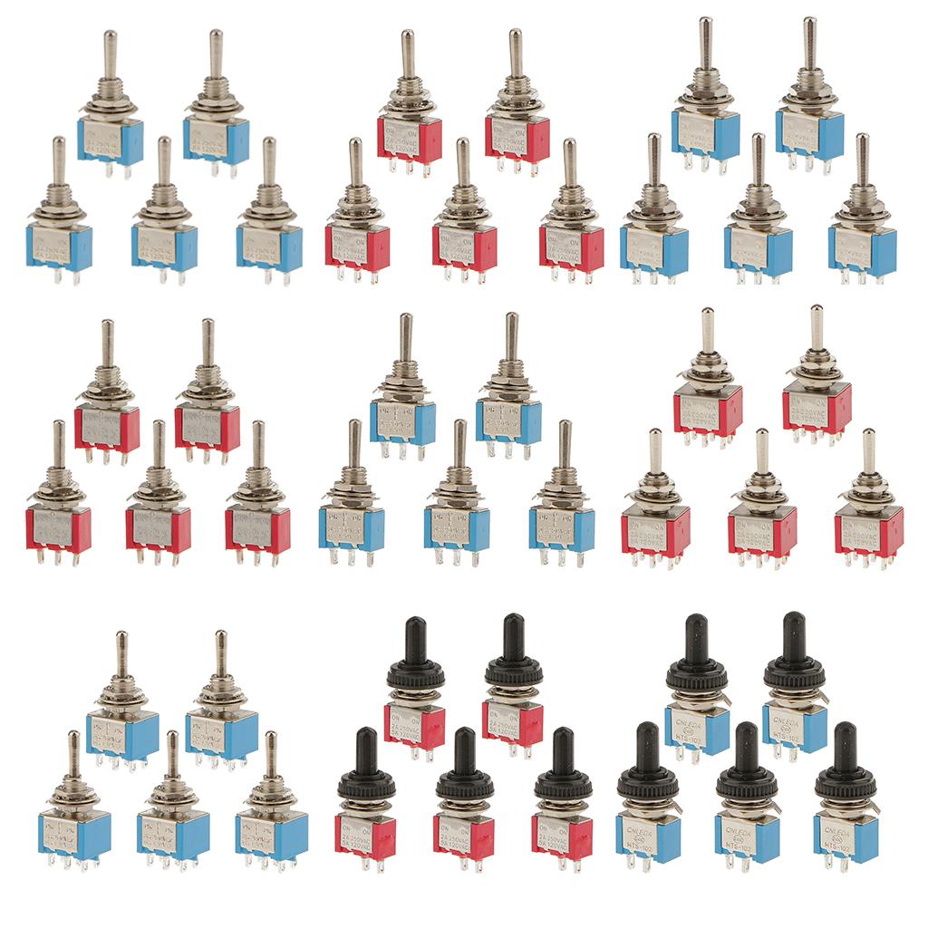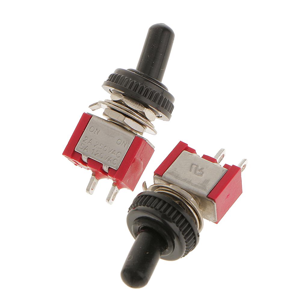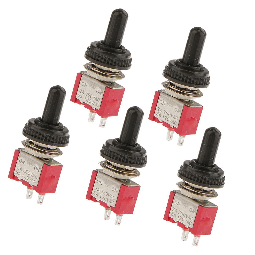 5 x On/Off Mini Small Toggle Switch + Waterproof Cover 2P Red