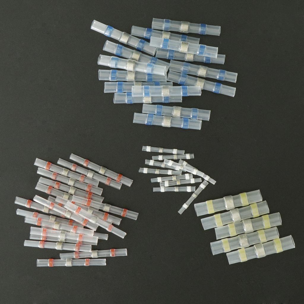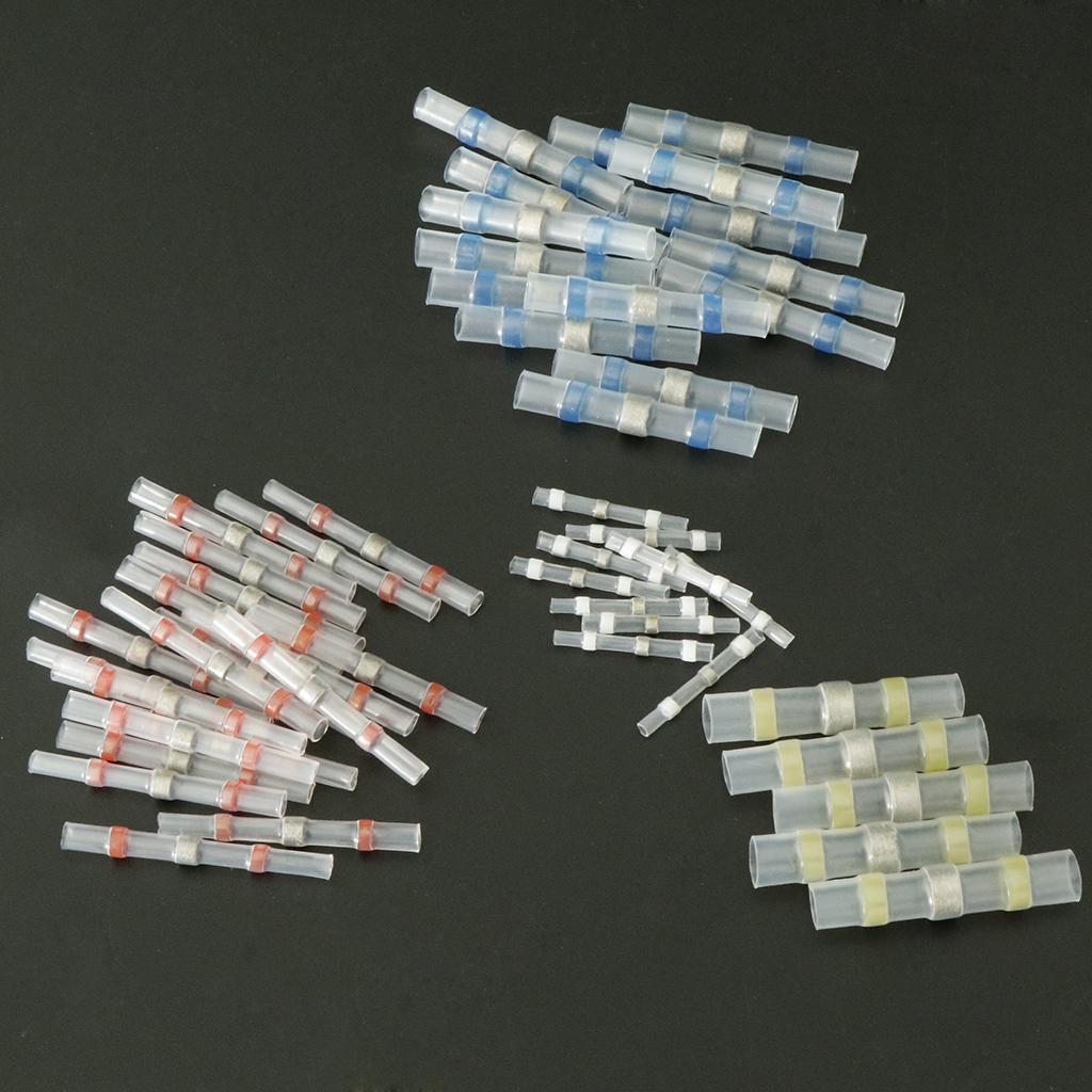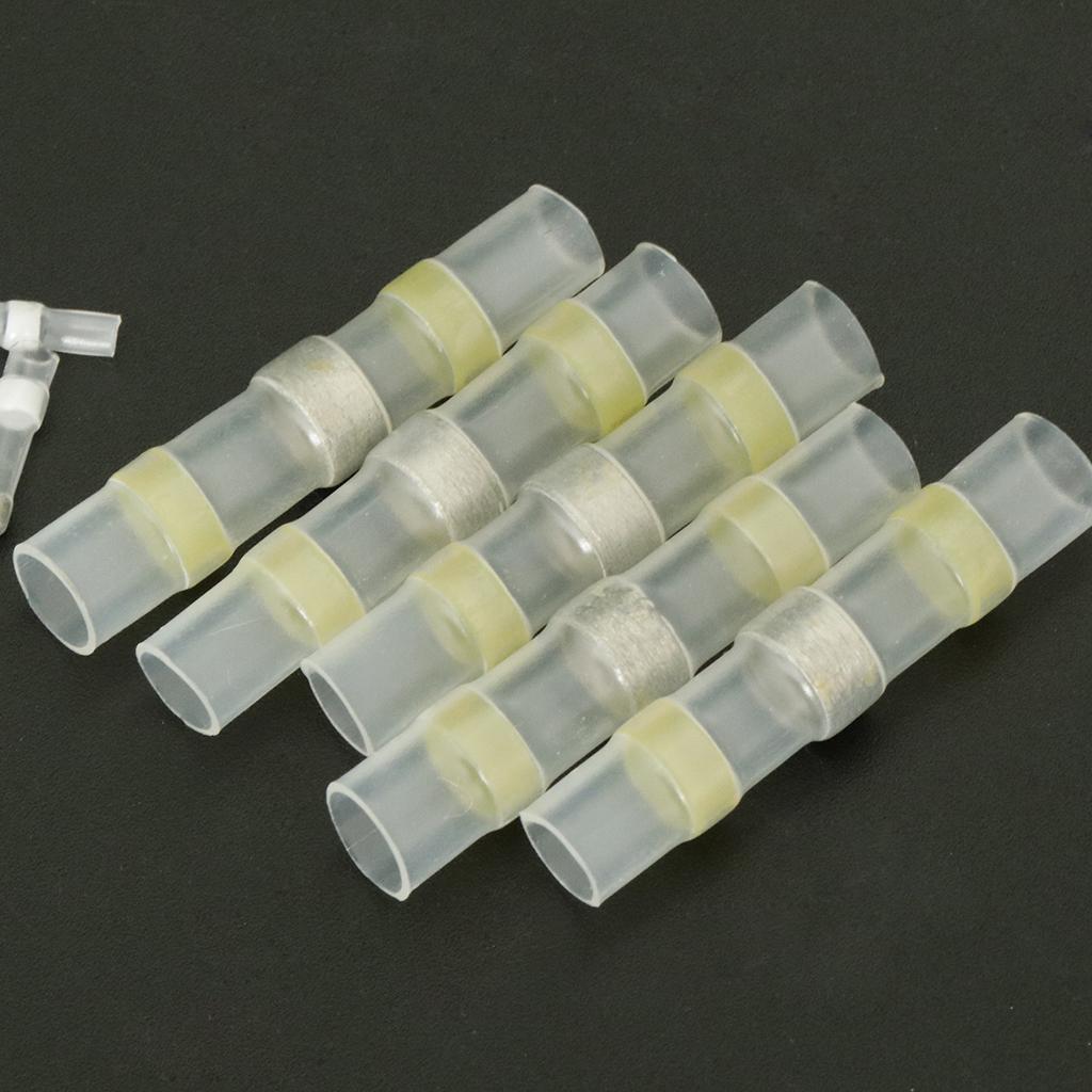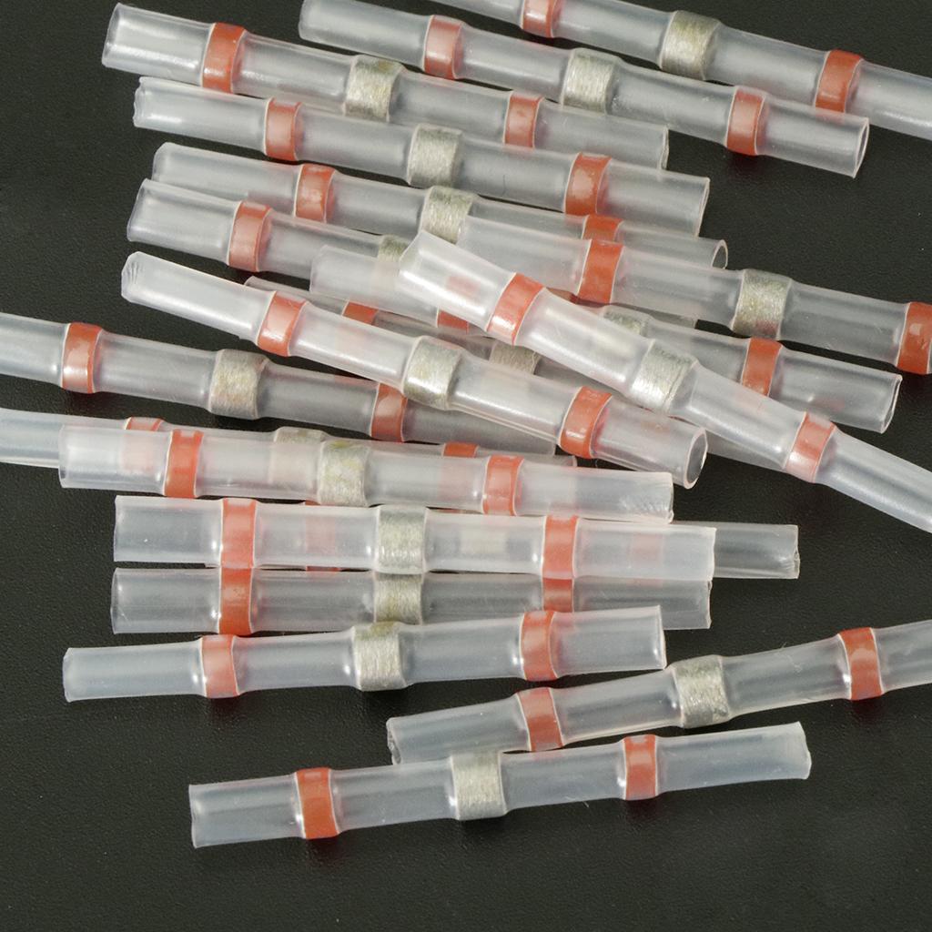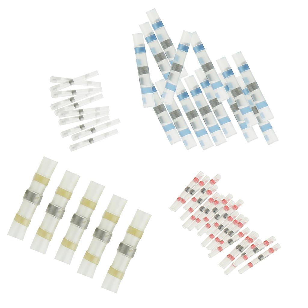 Polyolefin heat shrink butt connectors improved pullout strength, provides seal, strain relief, cable check, and insulation.