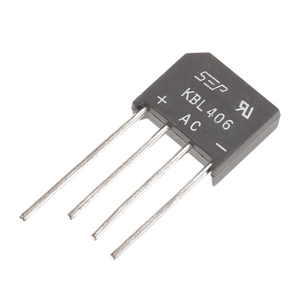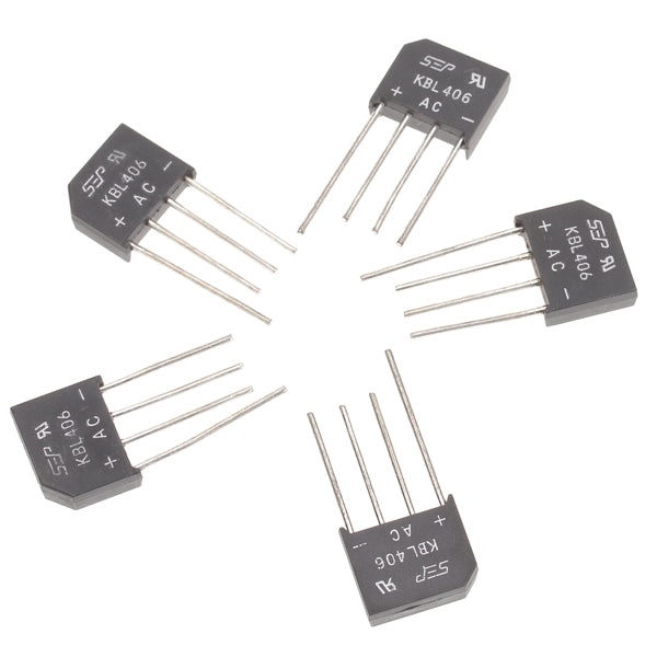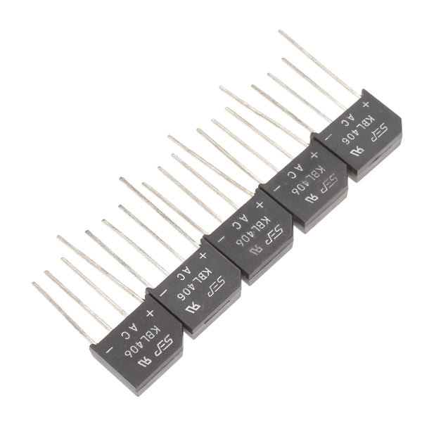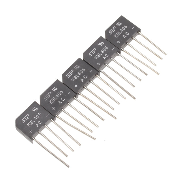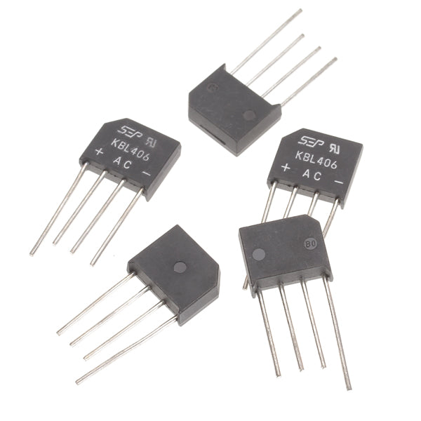 5pcs KBL406 bridge rectifiers with max. peak reverse voltage of 800V. The maximum average forward output current of these bridge rectifiers are 4A@Ta=50℃.
