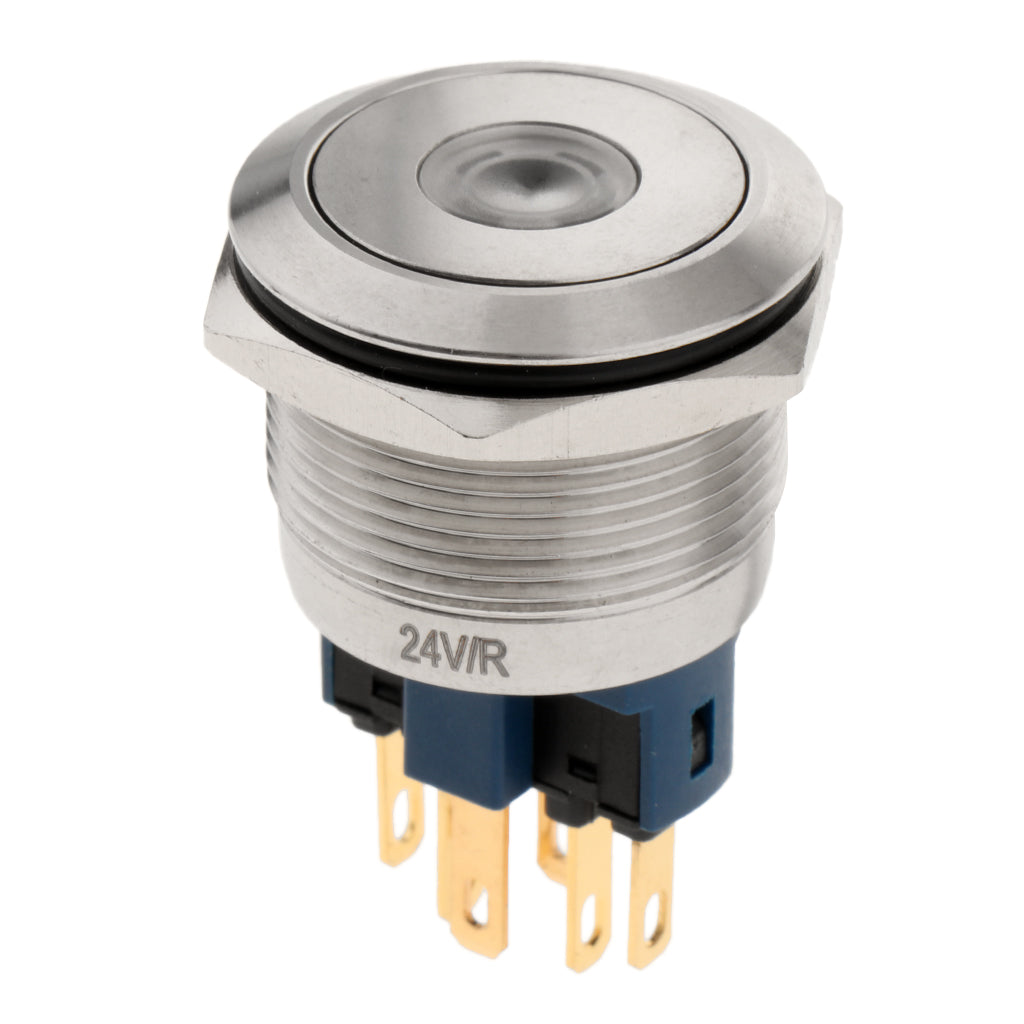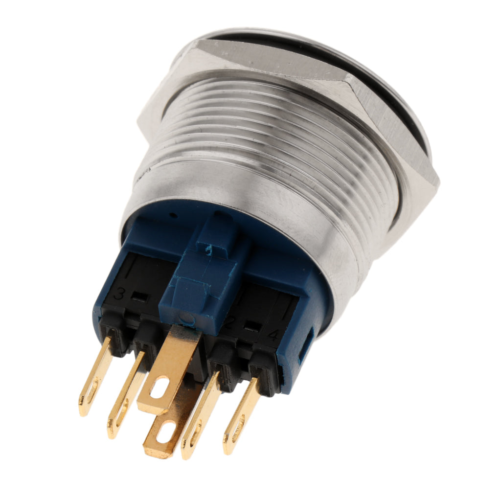 The switch is waterproof and fits 22mm/0.87inch diameter panel cut-outs.