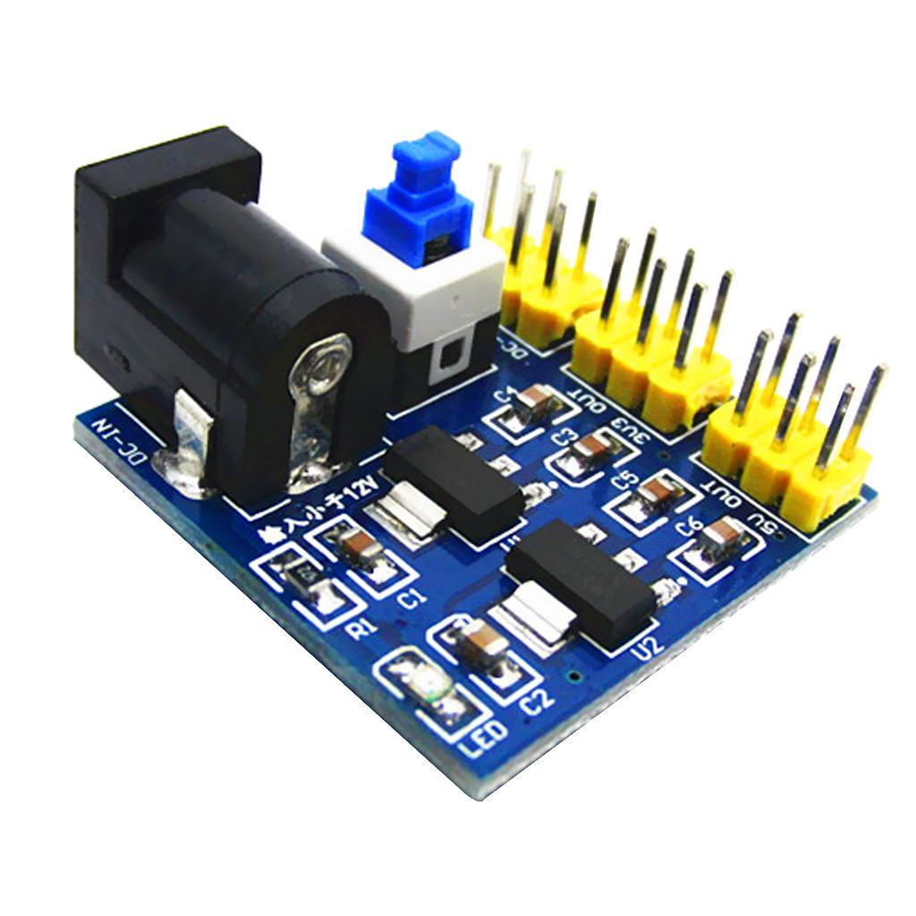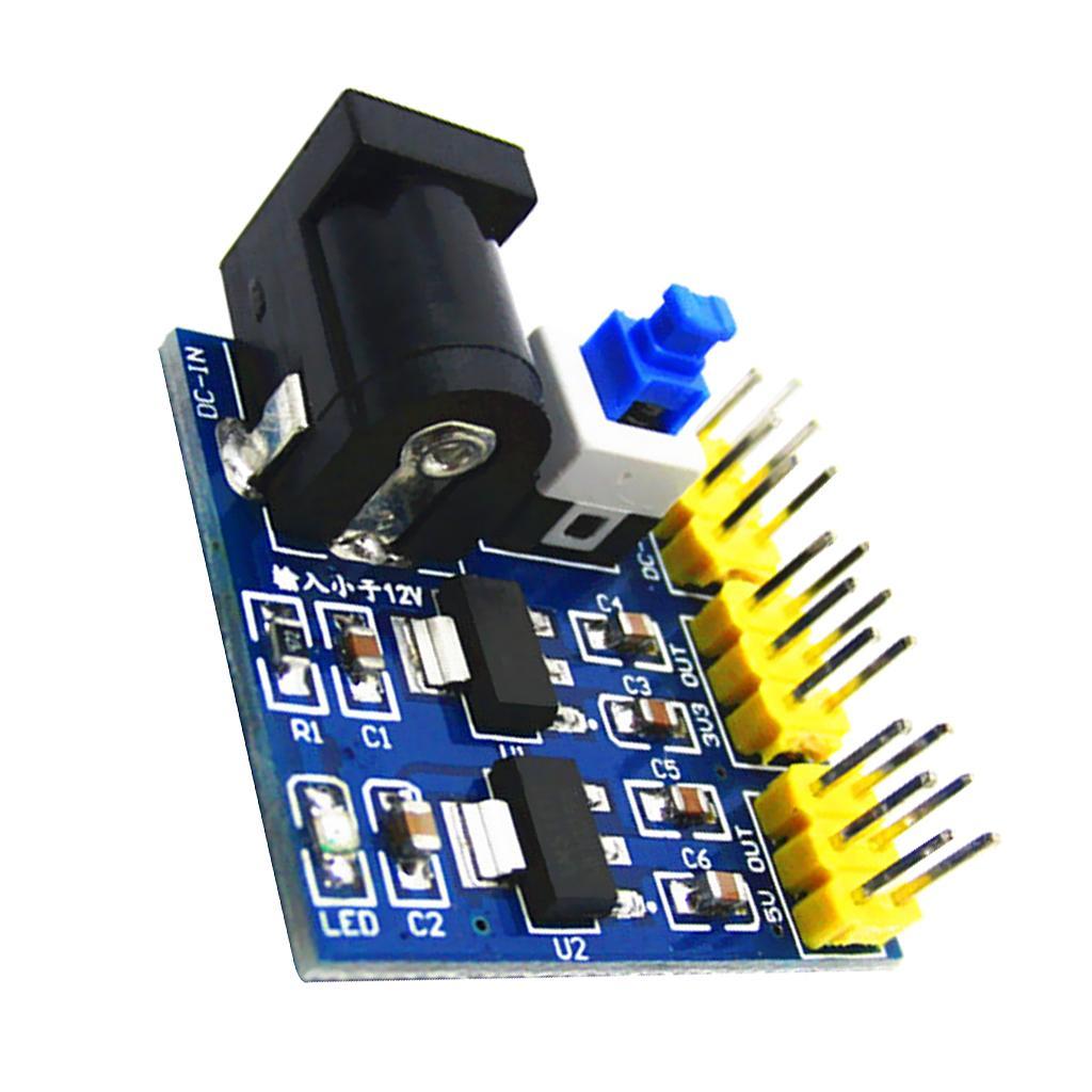 Triple Output: 3.3V (+ - 0.05v error), 5.0V (+ - 0.05v error), 800mA (load current must not exceed 800ma), 12V (12V input directly to the output)