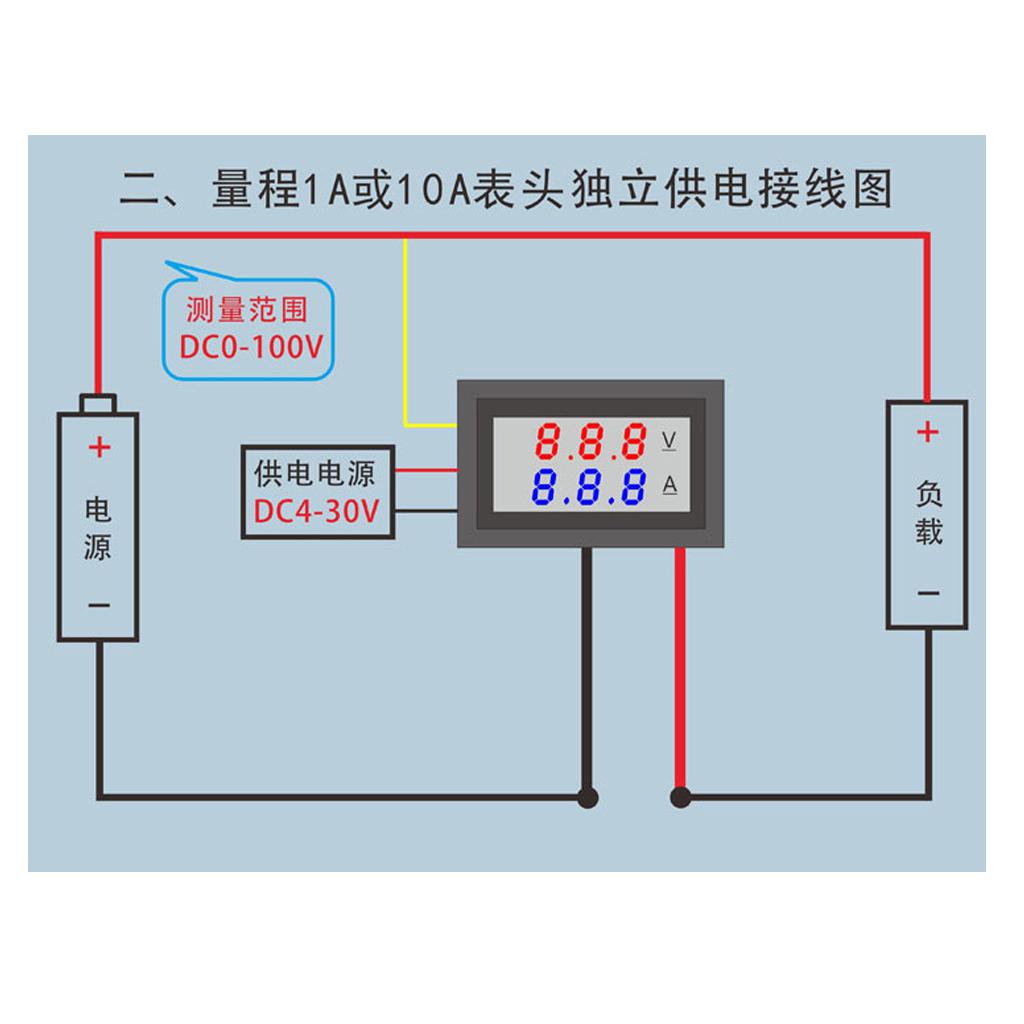 Voltmeter ammeter voltage range is DC 0-100V, current range is 0.0-10A.