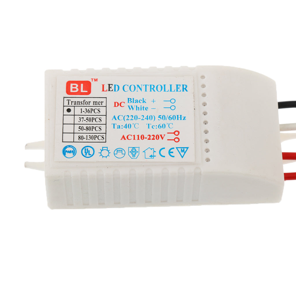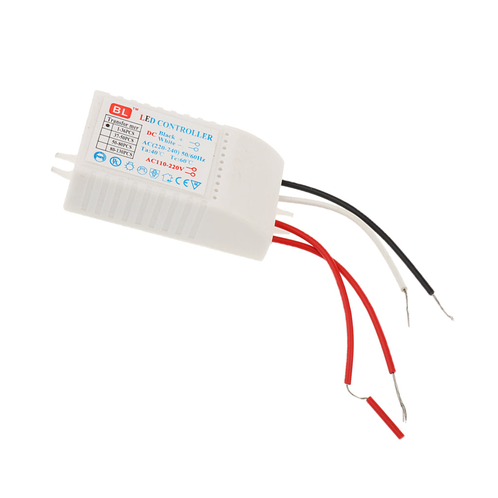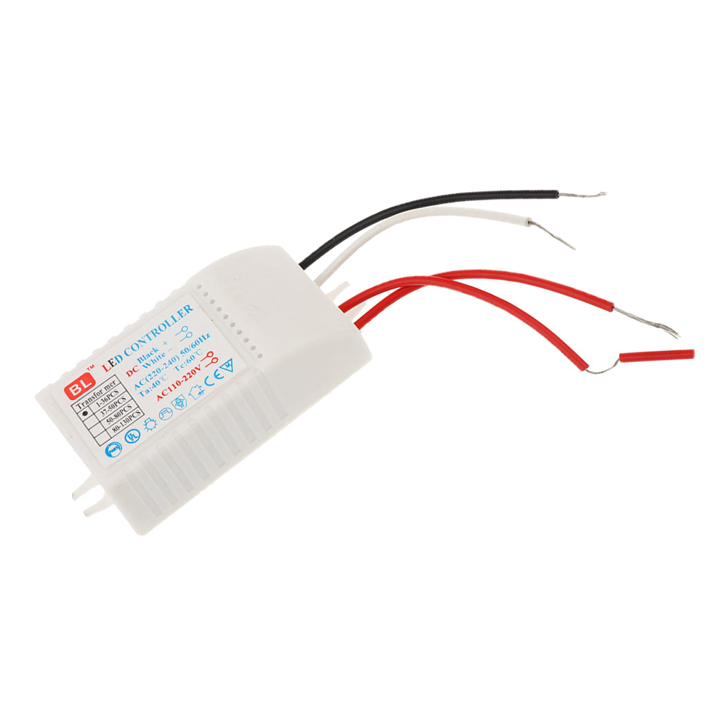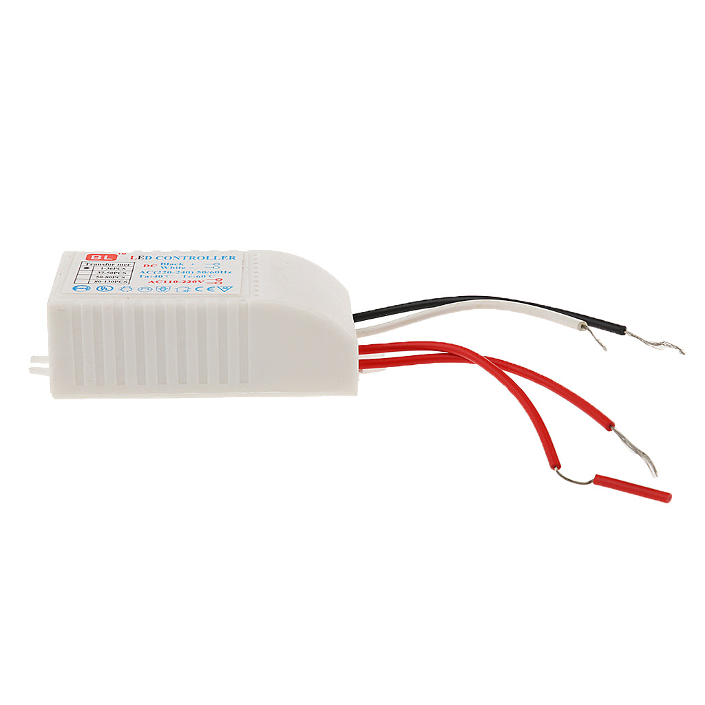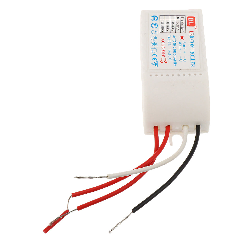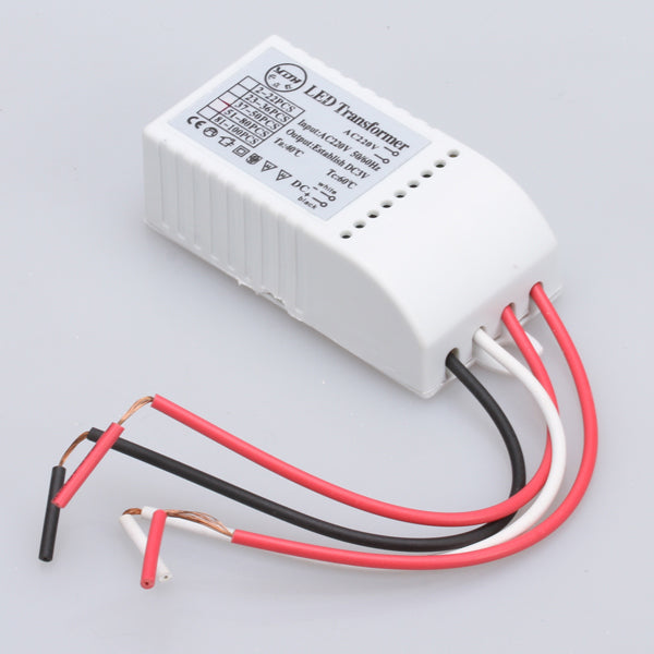 Plastic LED transformer for LED bulbs with 3mm-5mm diameter. The LED transformer can drive 23-36pcs of LEDs connected in a series circuit. The input of this LED transformer is 220V AC, 50 / 60Hz, with 3V output voltage for each LED bulb.