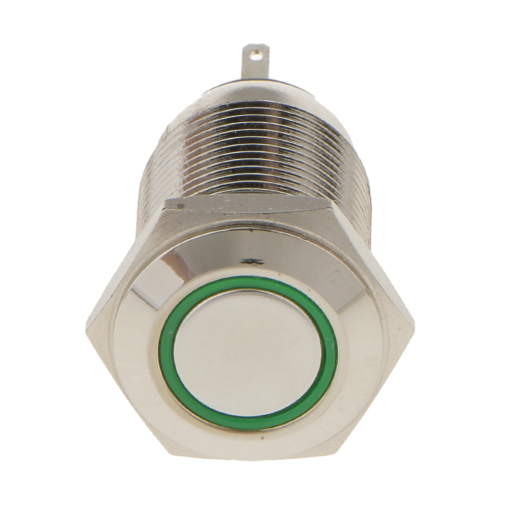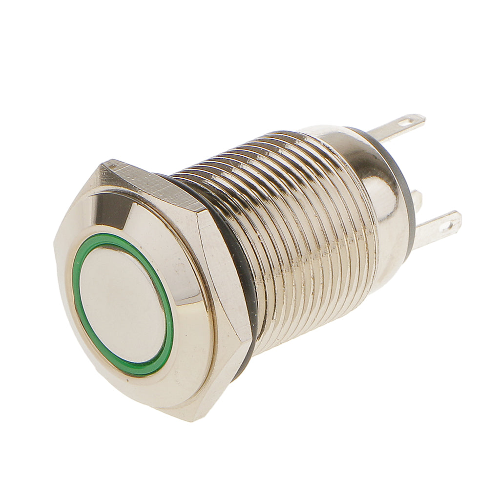 Metal Green LED Momentary 16mm Push Button Switch 12V SPST Waterproof