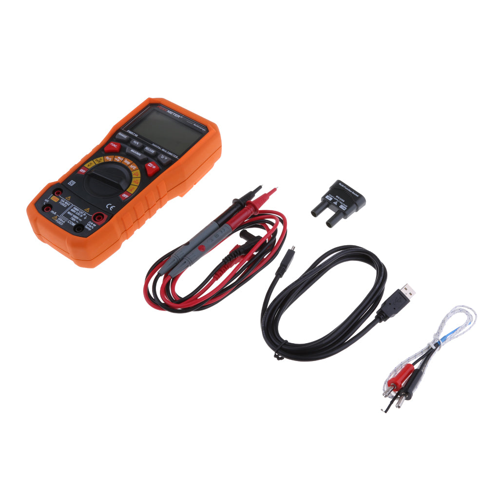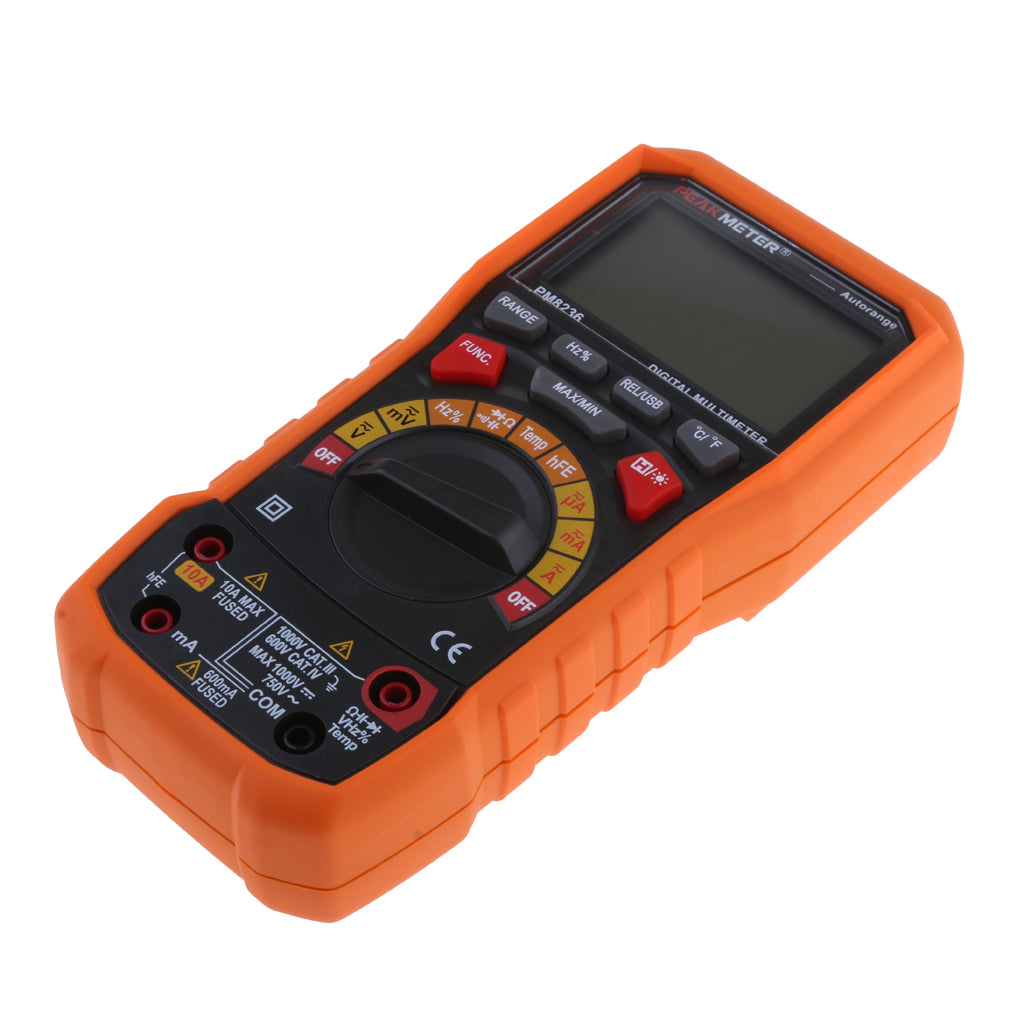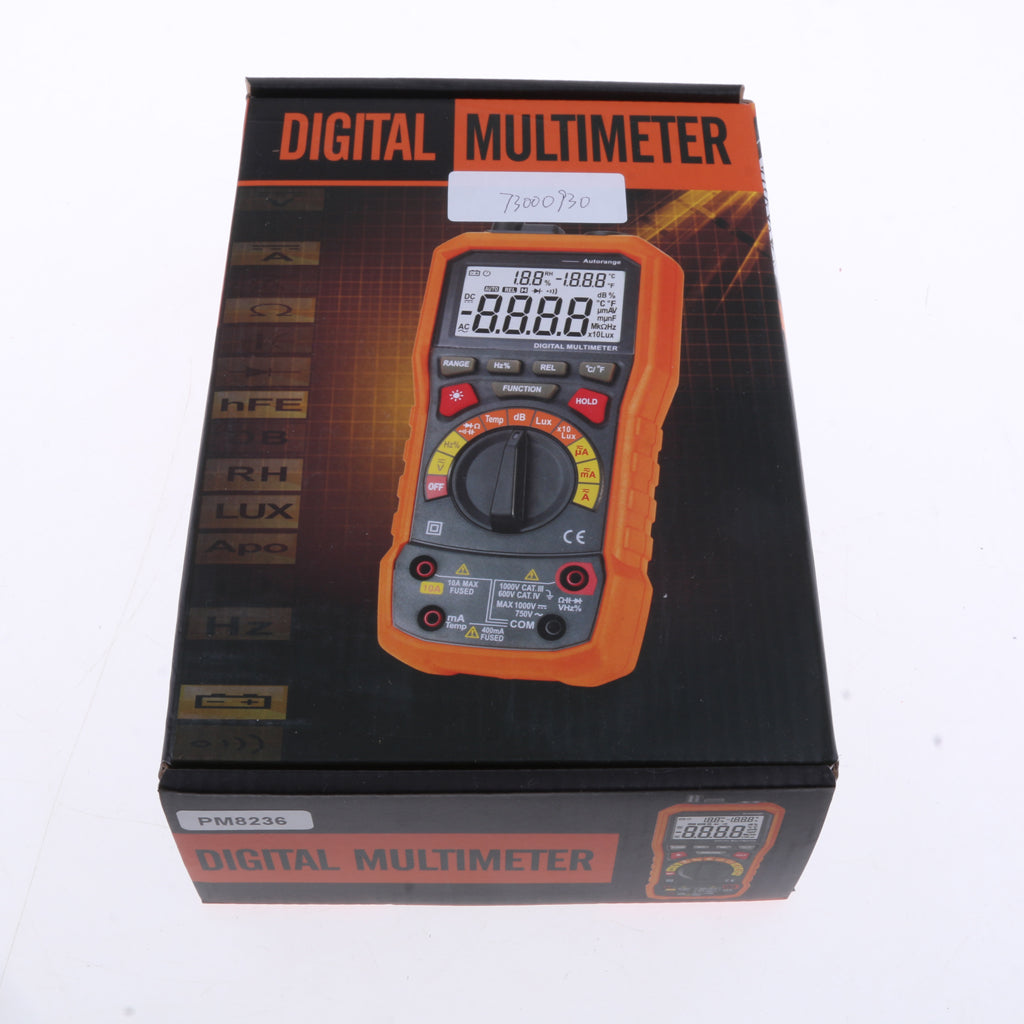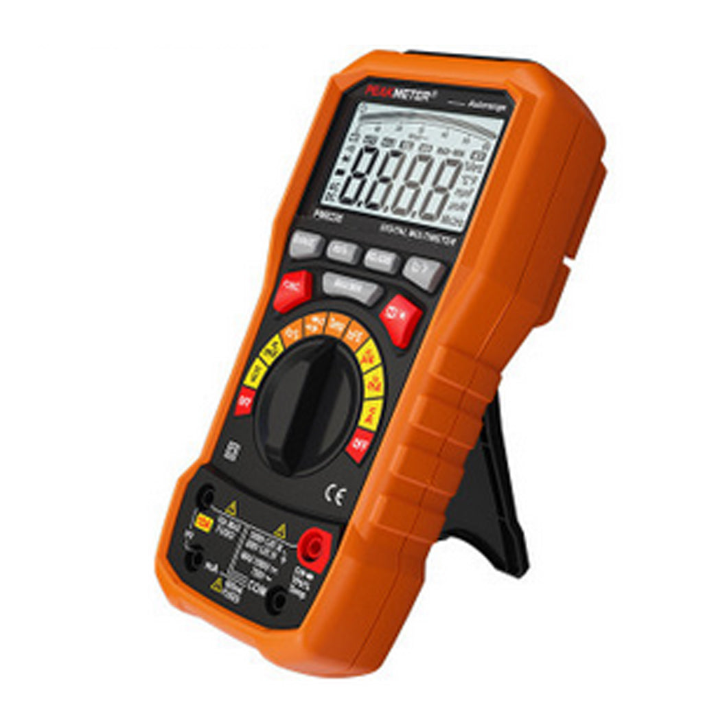 Auto-ranging multimeter for AC/DC voltage, AC/DC current, resistance, frequency and duty cycle, temperature, capacitance, diode and audion measurements.