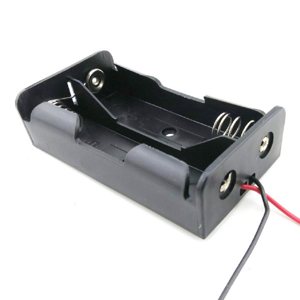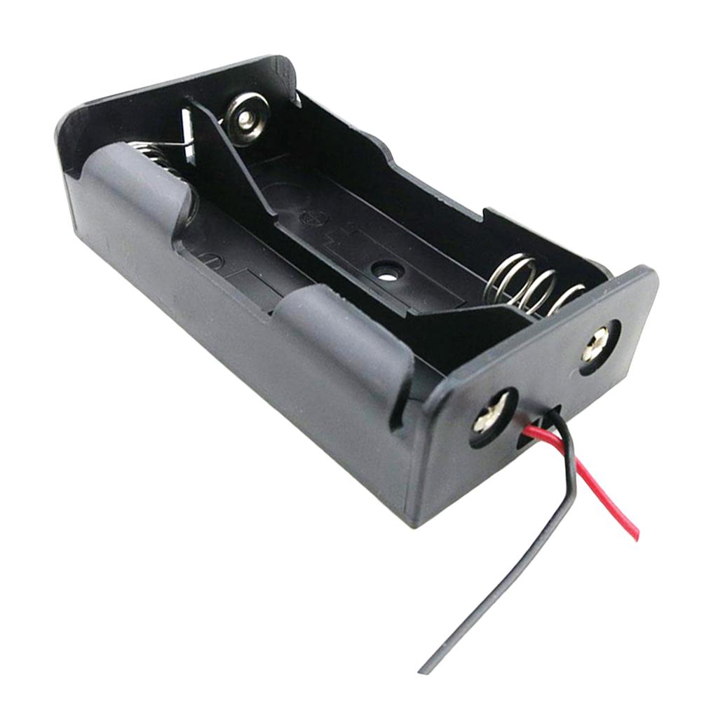 Plastic Case Holder Storage Box Cover for 18650 Button Top Double Battery Black with Wire Leads