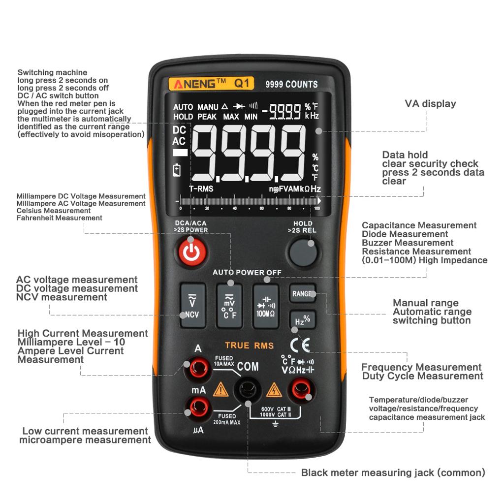 Q1 Digital Multimeter Voltmeter Ammeter AC DC OHM Current Voltage Circuit Tester Buzzer with LCD Backlit