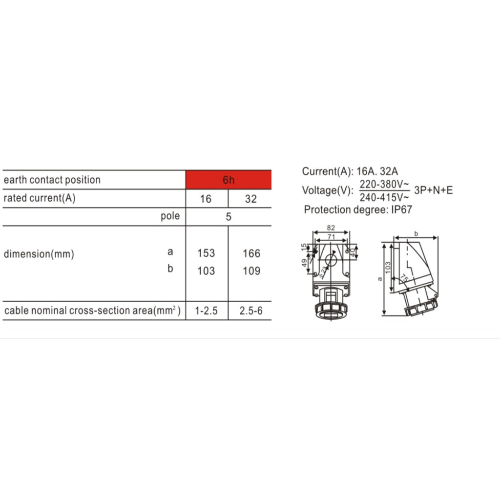 Waterproof 3P+N+E Industrial Plug Socket AC 380-415V 16A Amp IP67 5-Pin