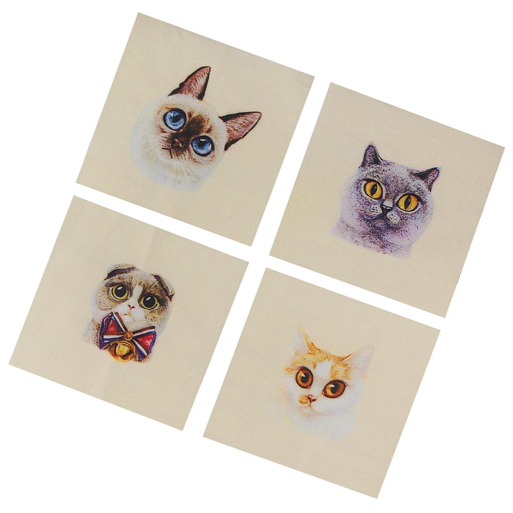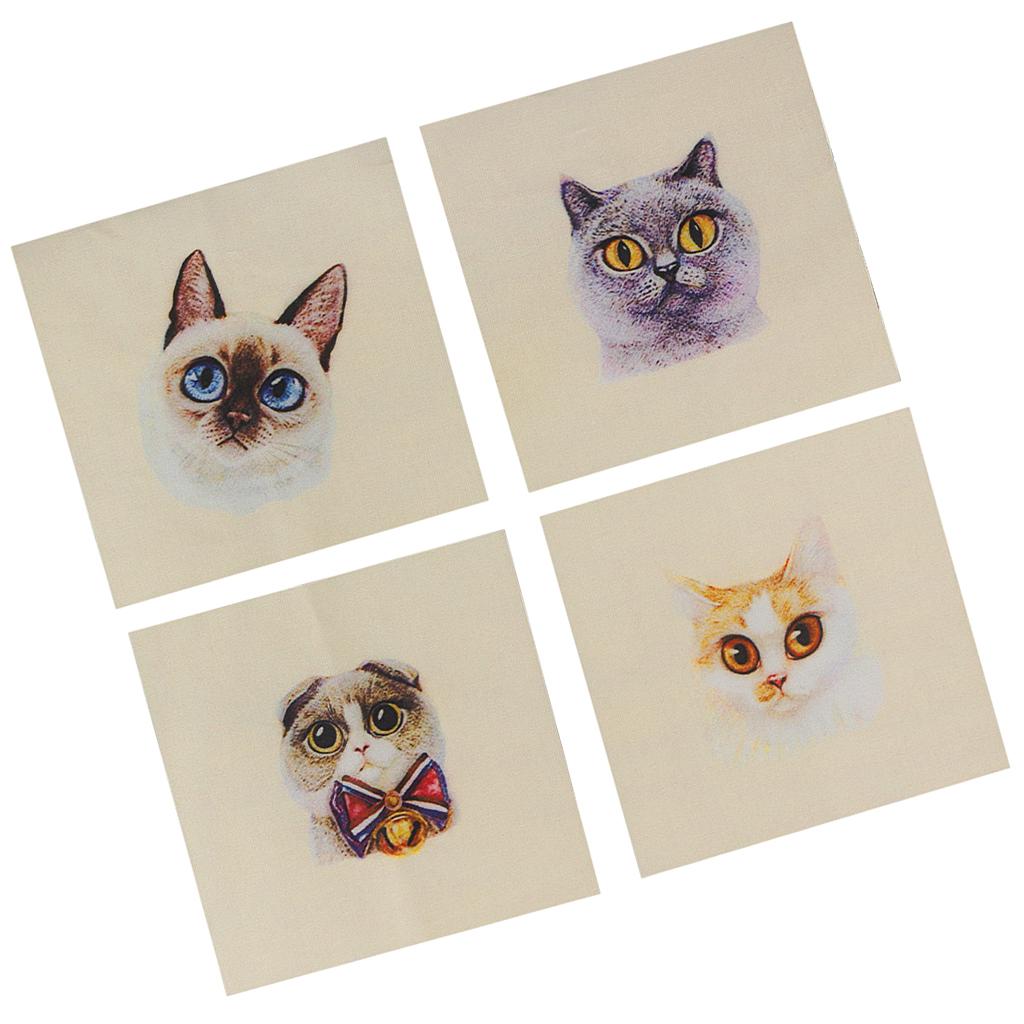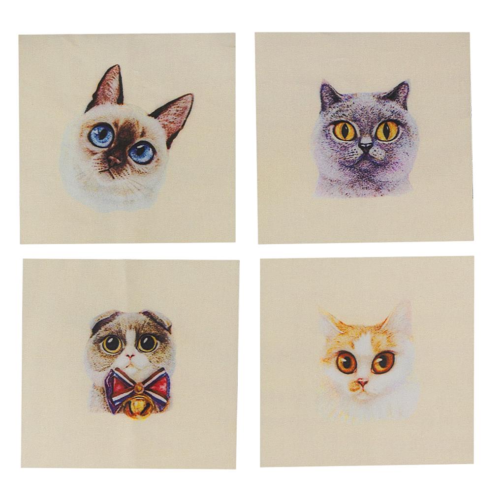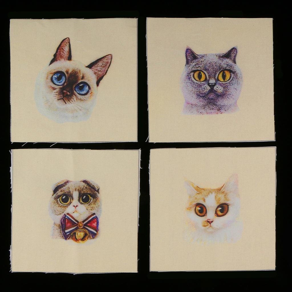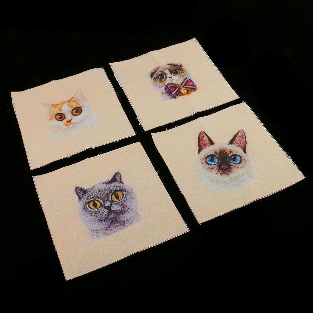 4 Pieces Assorted Cats Pattern Hand Dyed Printed Cotton Fabric Sewing DIY Patchwork 15x15cm