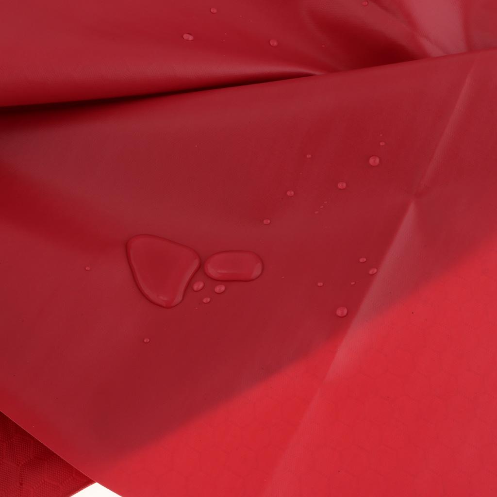 A fabric with a PVC waterproof backing and a water repellent front coat;