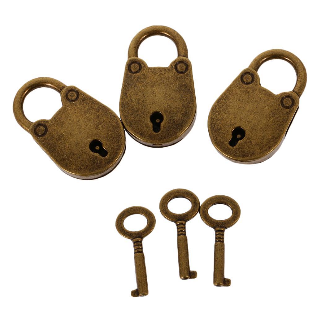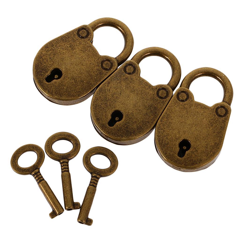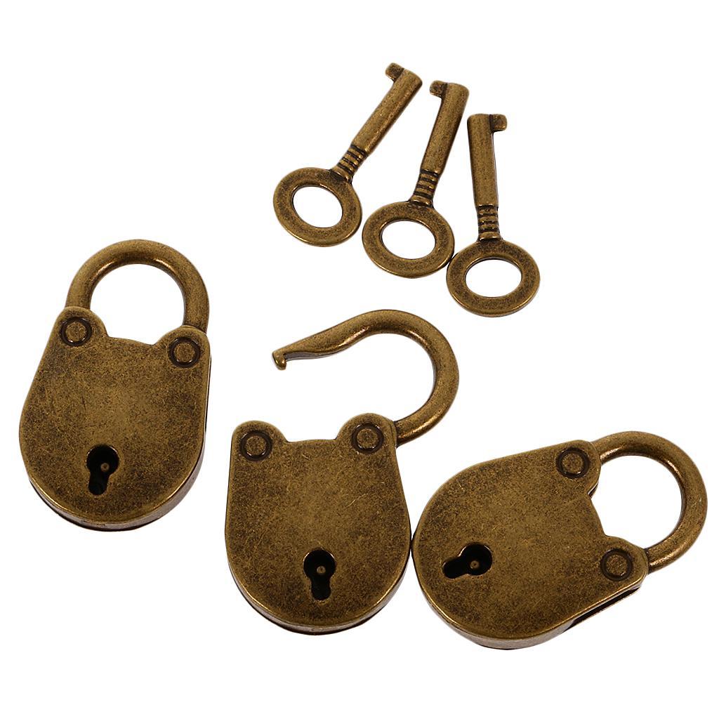 3Pcs Antique Suitcase Travel PadLock Pig Luggage Bag Lock Key Novelty Bronze