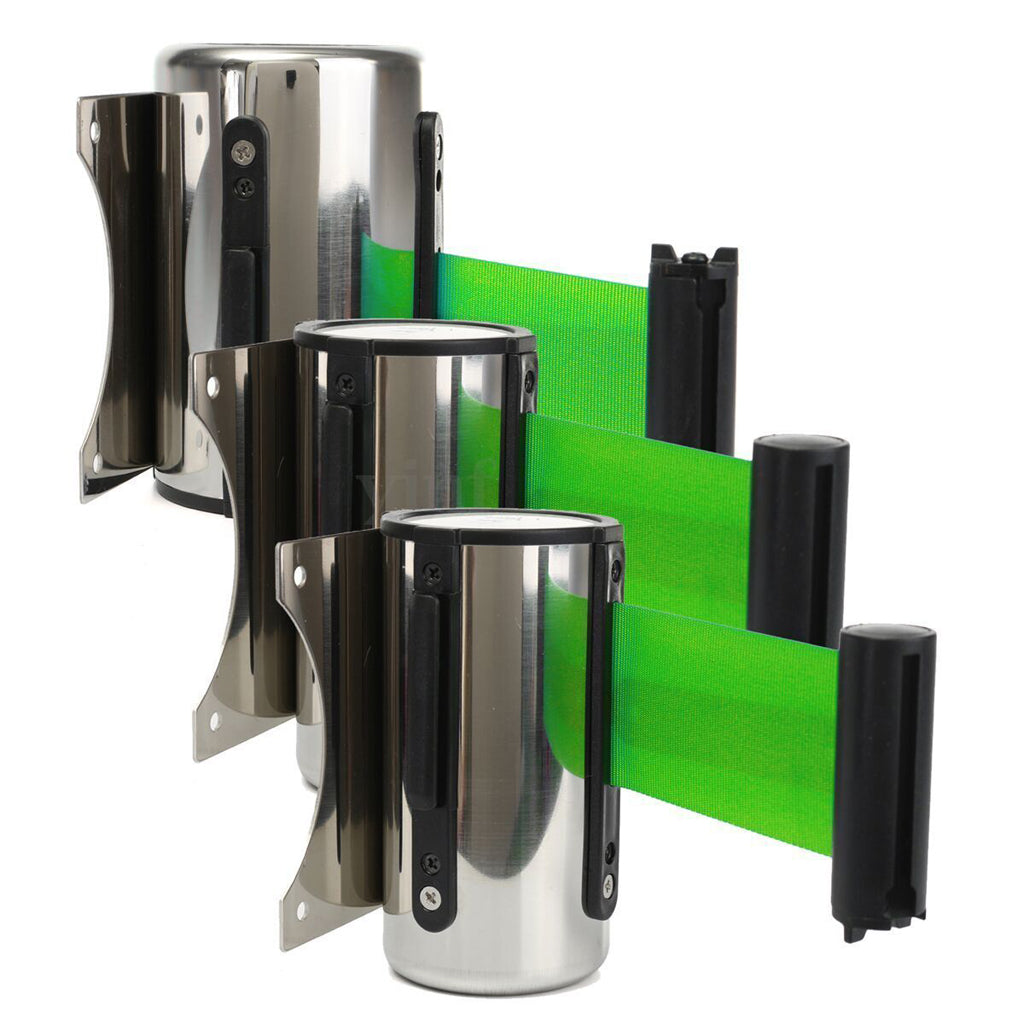 5m Heavy Duty Retractable Crowd Control Barrier Ribbon QUEUE Belts Green