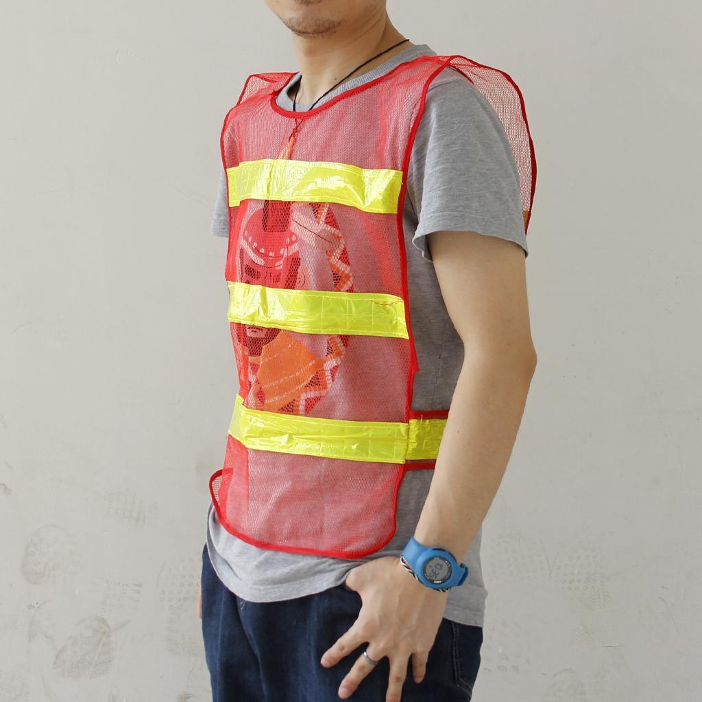 MagiDeal High Visibility Safety Waistcoat Vest Reflective Strips Red Mesh