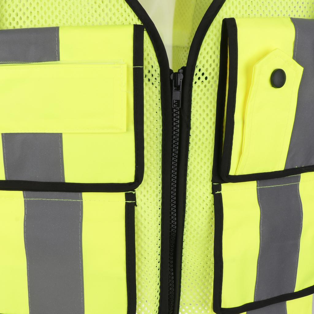 100% Polyester high visibility reflective material, durable, breathable, lightweight and machine washable.
