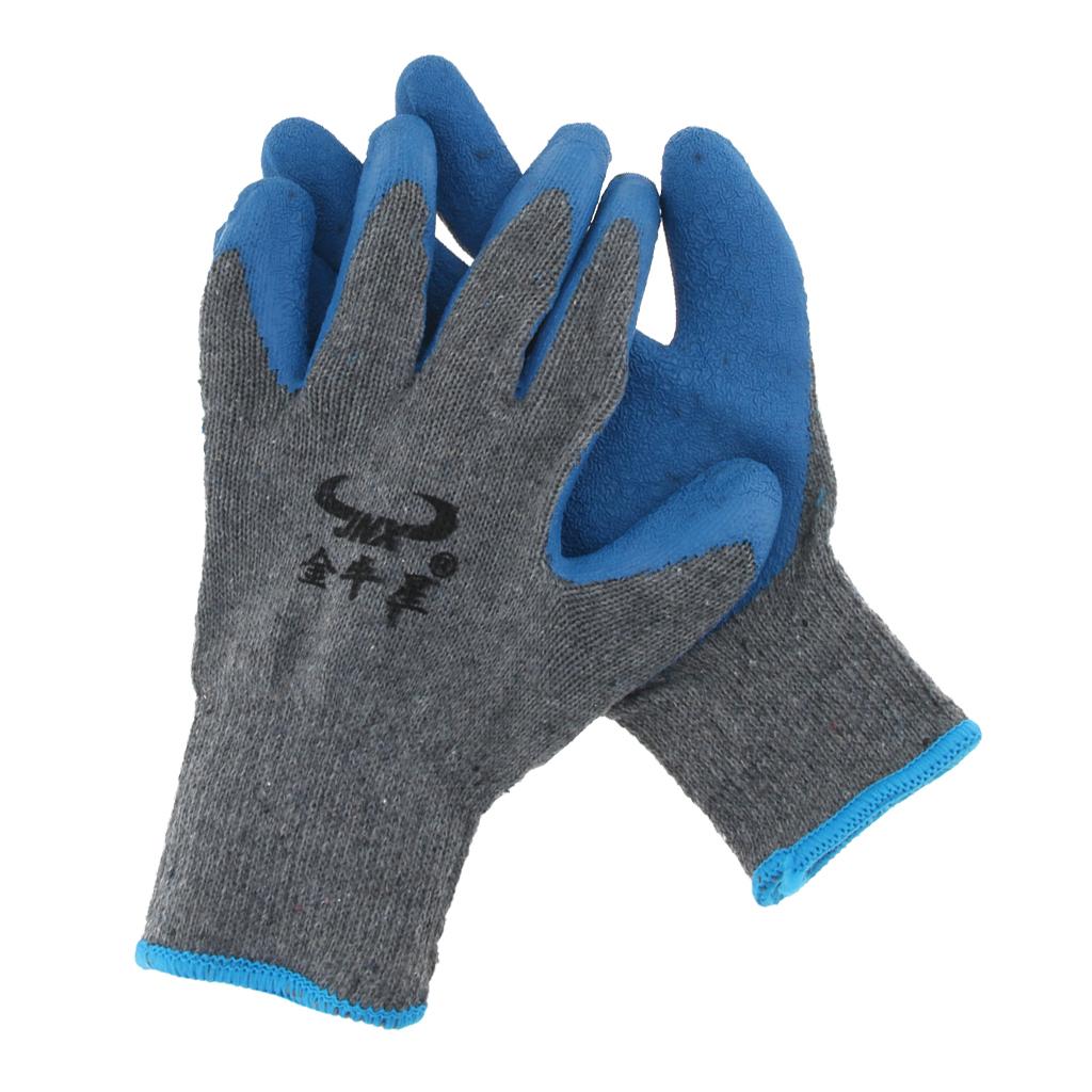 New Men / Woman Textured Rubber Palm Work Garden Wrist Glove Cotton-Polyester Blue Gray
