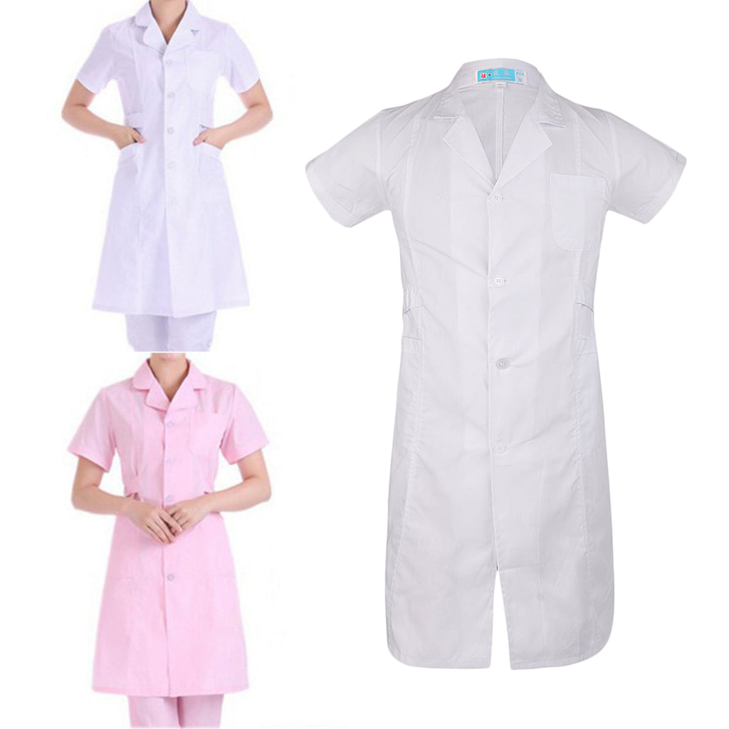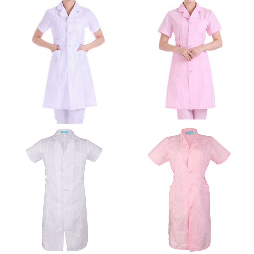 Women White Scrubs Lab Coat Medical Nurse Doctor Uniform Lapel Neck S Short Sleeve-White