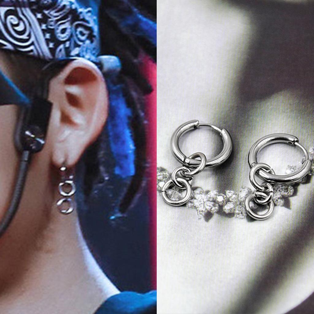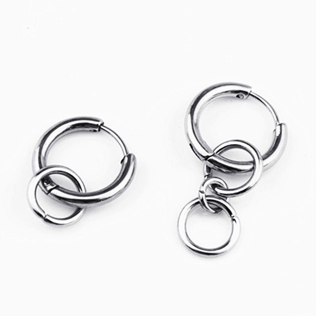 Hip Hop Stainless Steel 4-rings Dangle Piercing Earrings.
