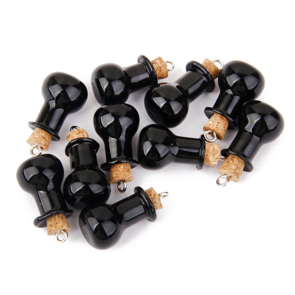 10 Glass Cork Bottle Flat Bulb Jars Vials Wishing Bottles DIY Pendant Black
