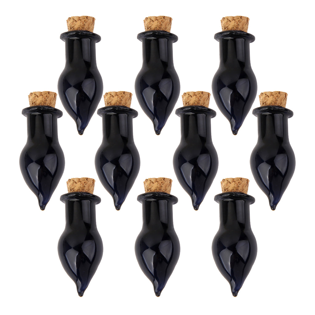 10 Mini Glass Cork Bottle Tear Drops Jars Vials Wish Bottle Love Note Black