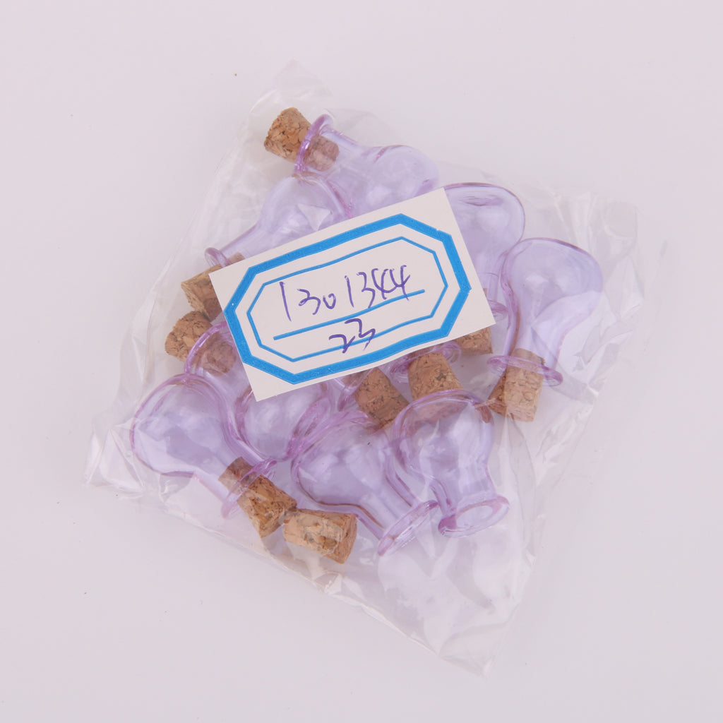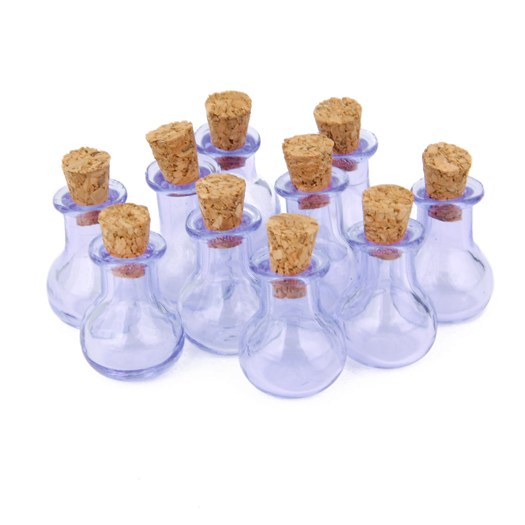 10Pcs Glass Cork Bottles Flat Bulb Vial Wishing Bottle DIY Pendant Purple