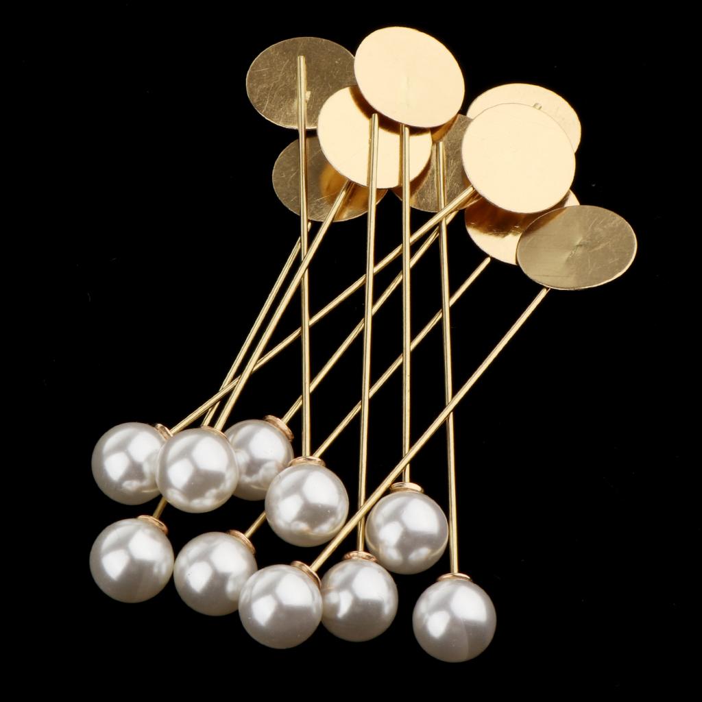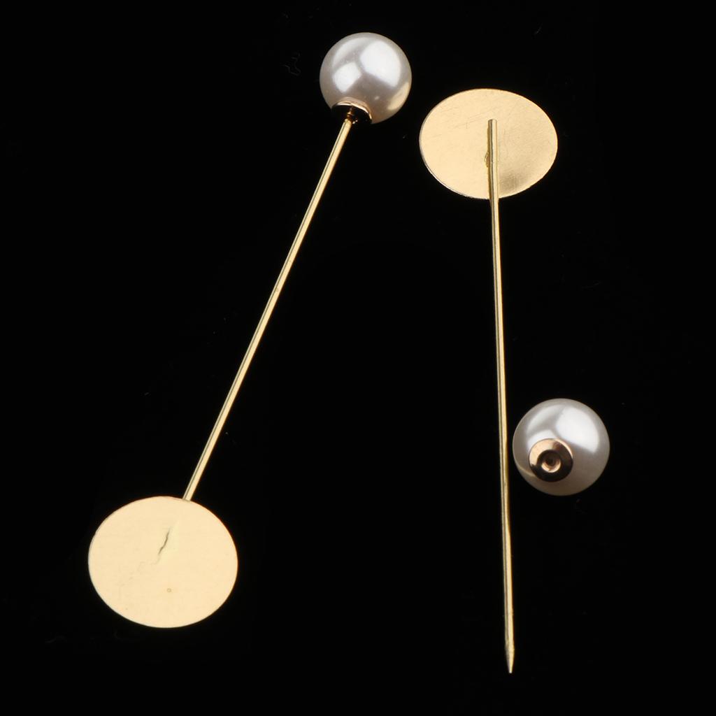 10Pcs Pearl Lapel Stick Pin Base Brooch Glue on Collar Suit Lapel Pin 78mm