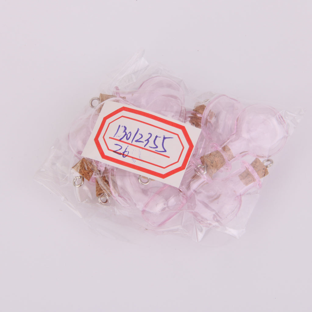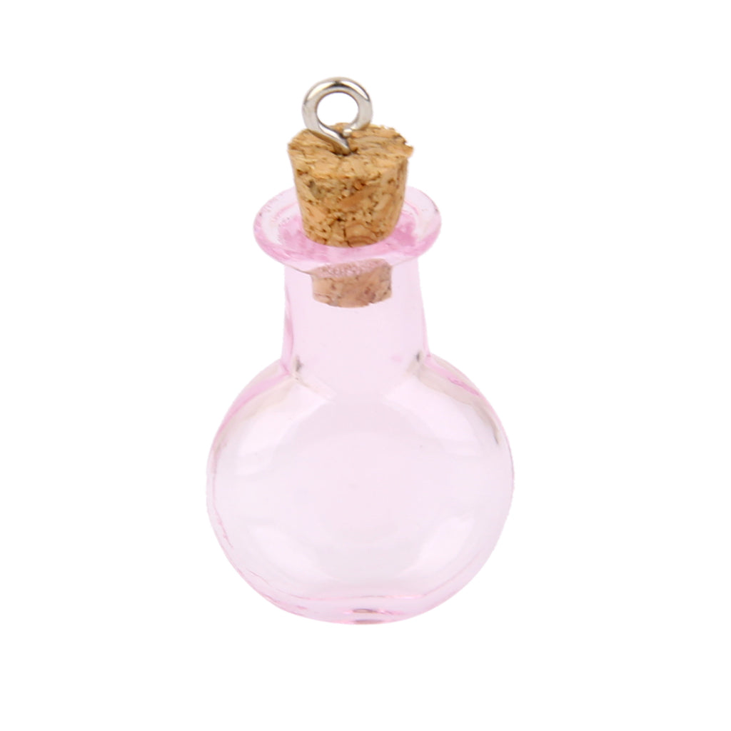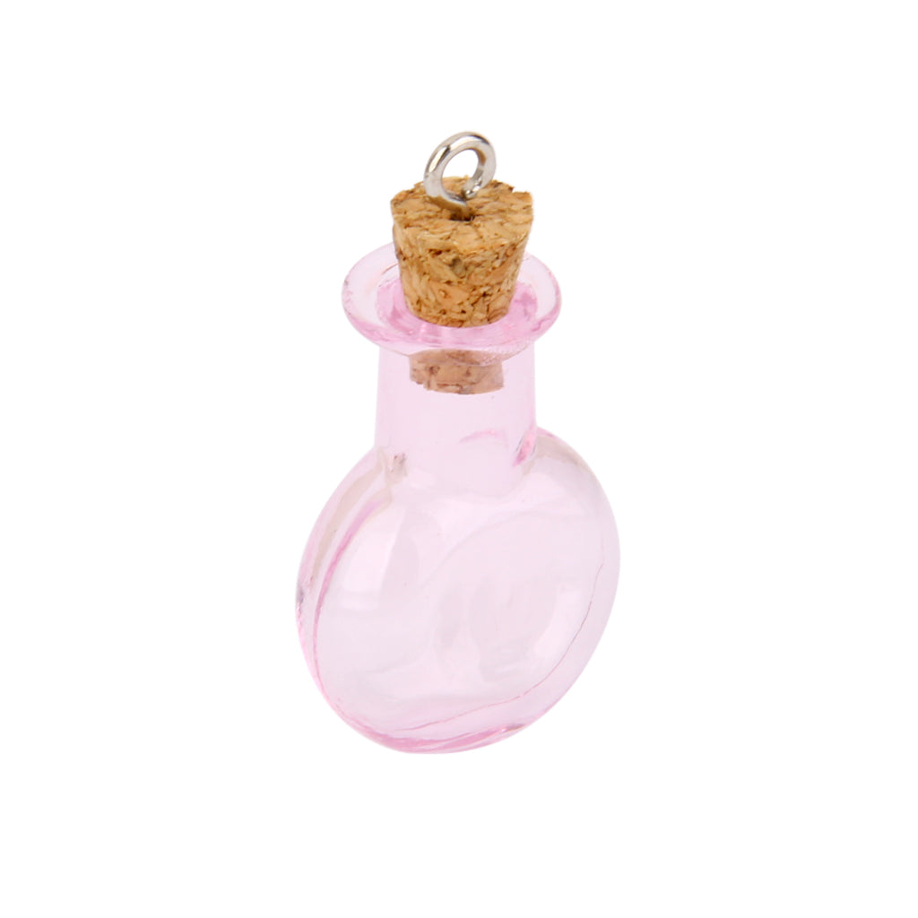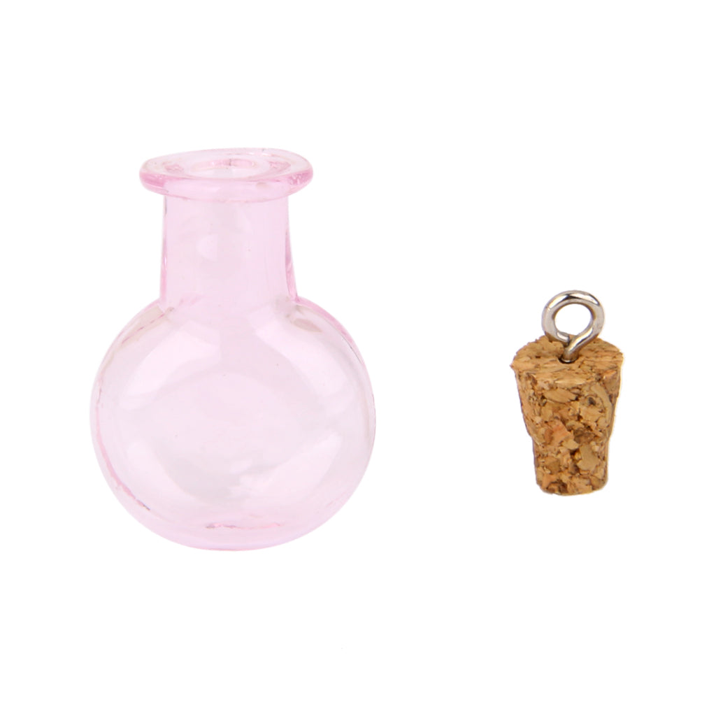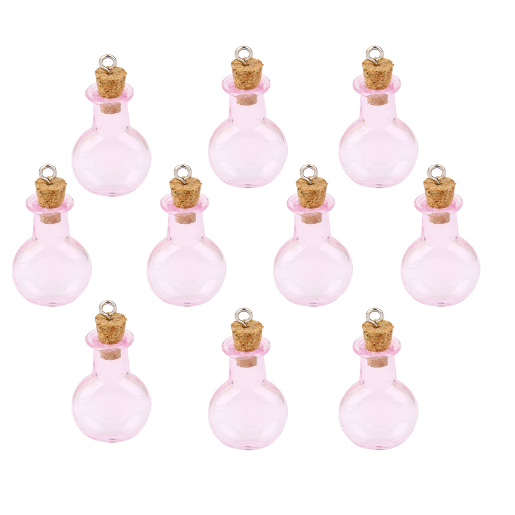 10pcs Pink Glass Cork Bottles Vial Wishing Bottle DIY Pendant - Flat Round