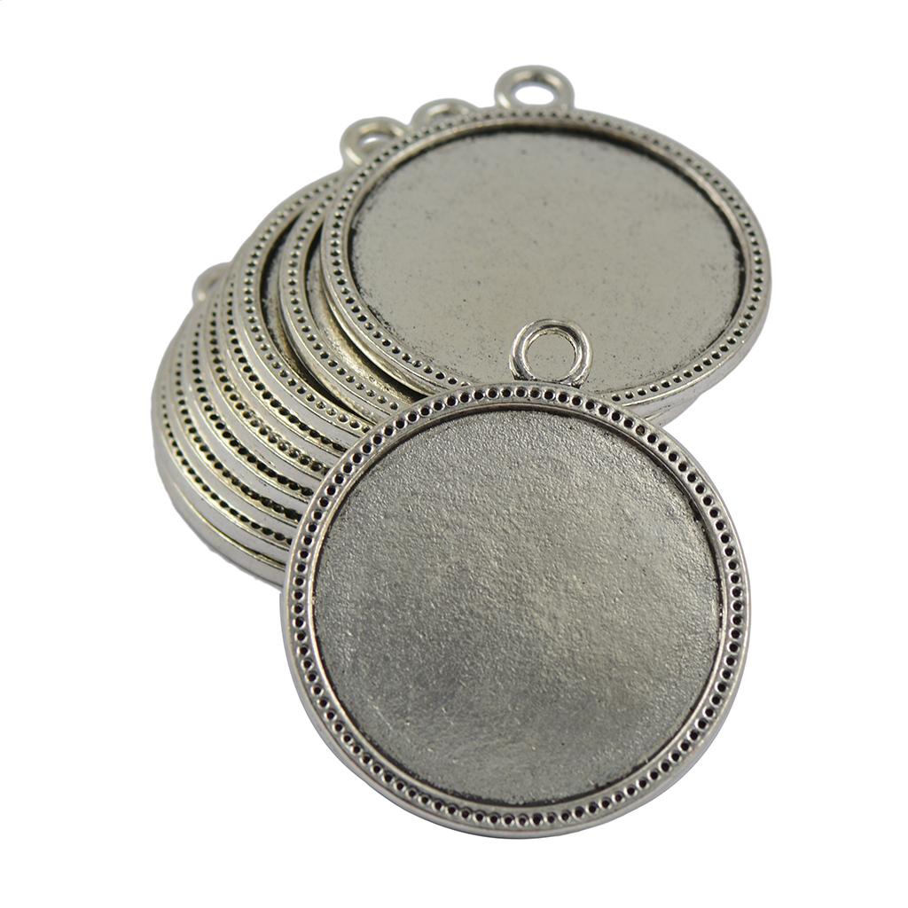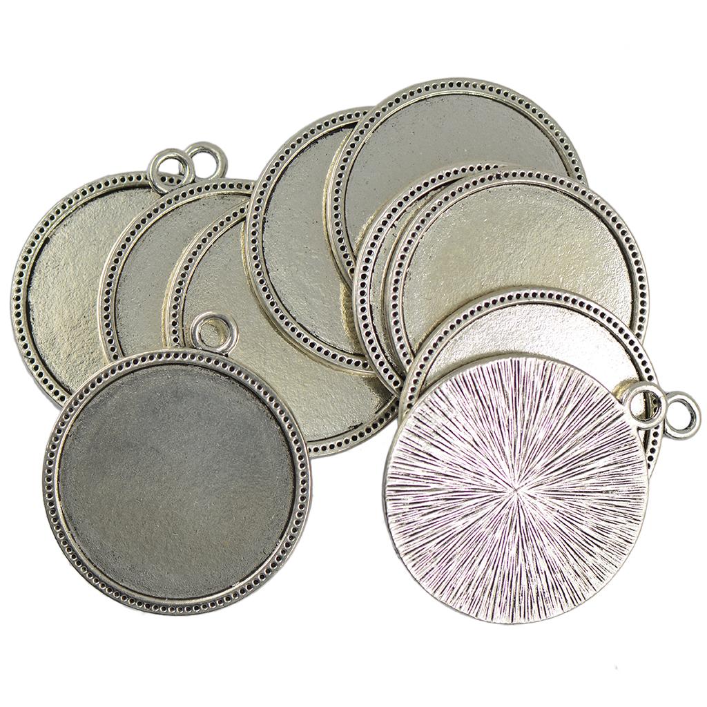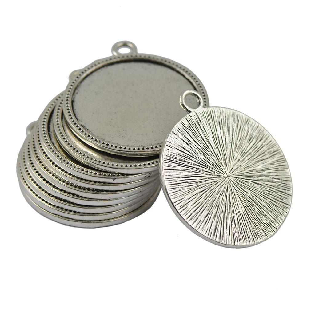 10pcs Round Bezel Tray Base for Cabochon Necklace Pendant Tibetan Silver