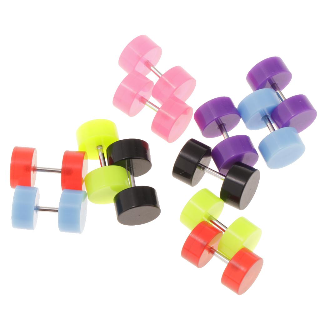 12pcs Acrylic Stainless Steel Barbell Stud Earring Fake Illusion Guage Plugs
