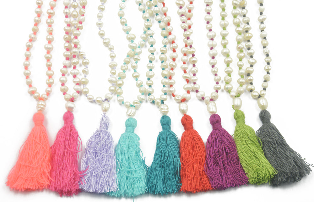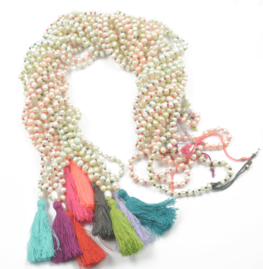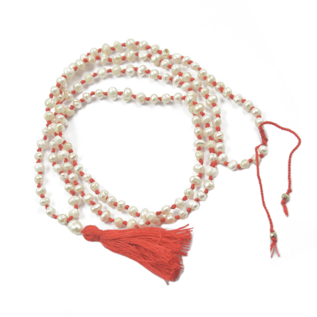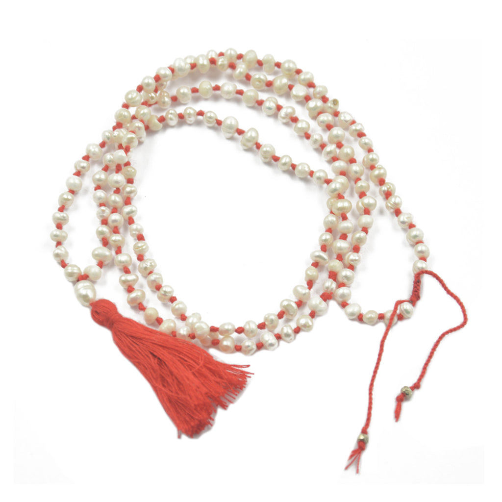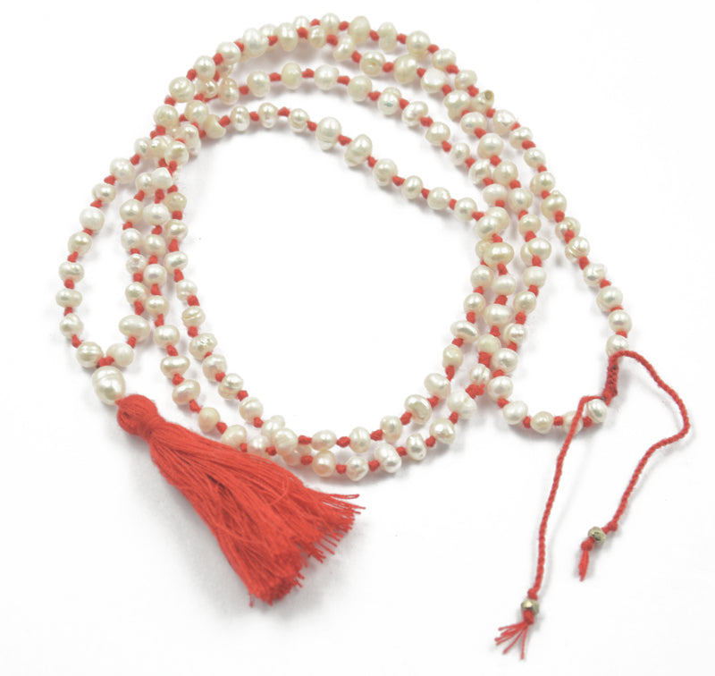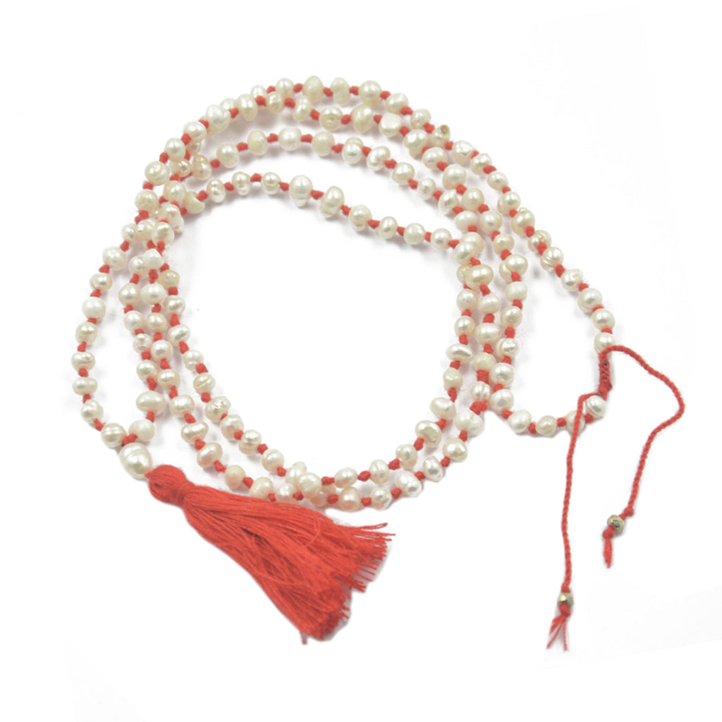 16" Fresh Water Pearl Beads Yoga Meditation Mala Prayer Tassel Necklace orange