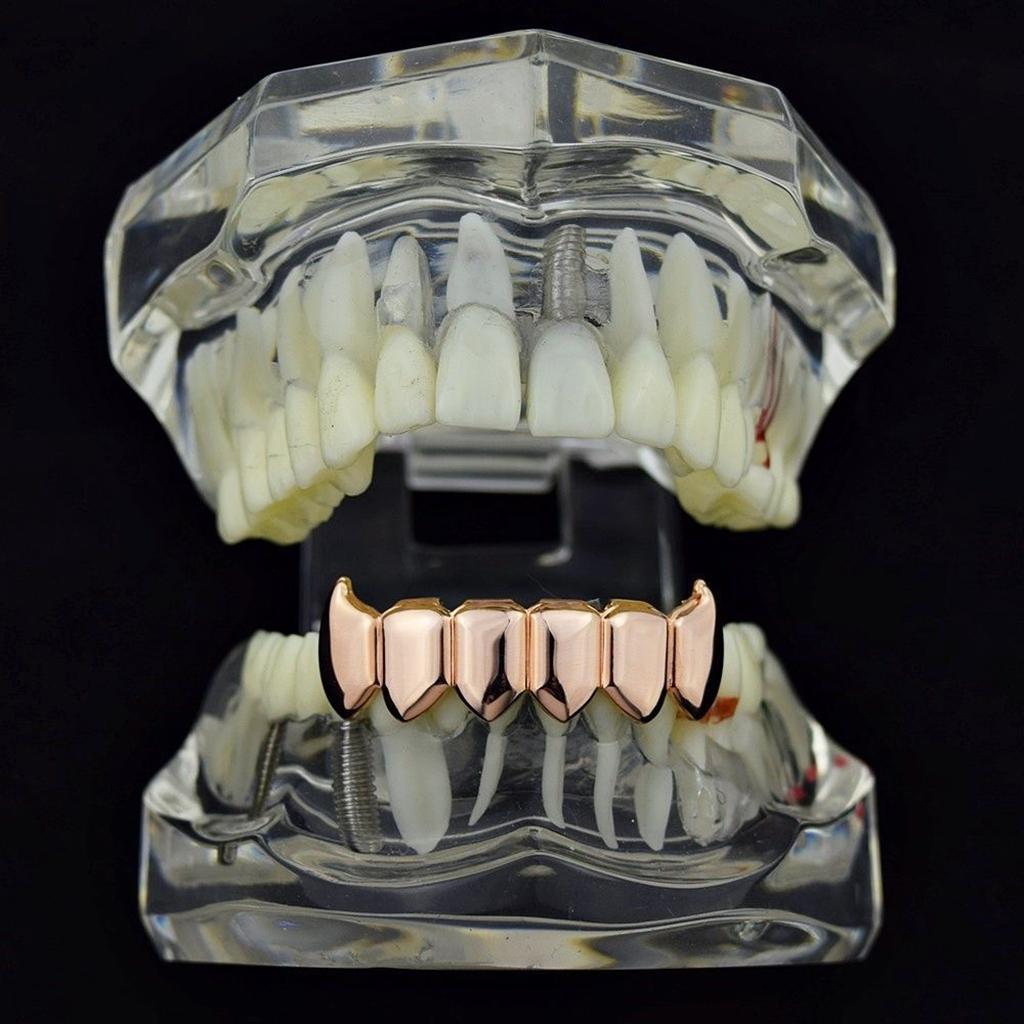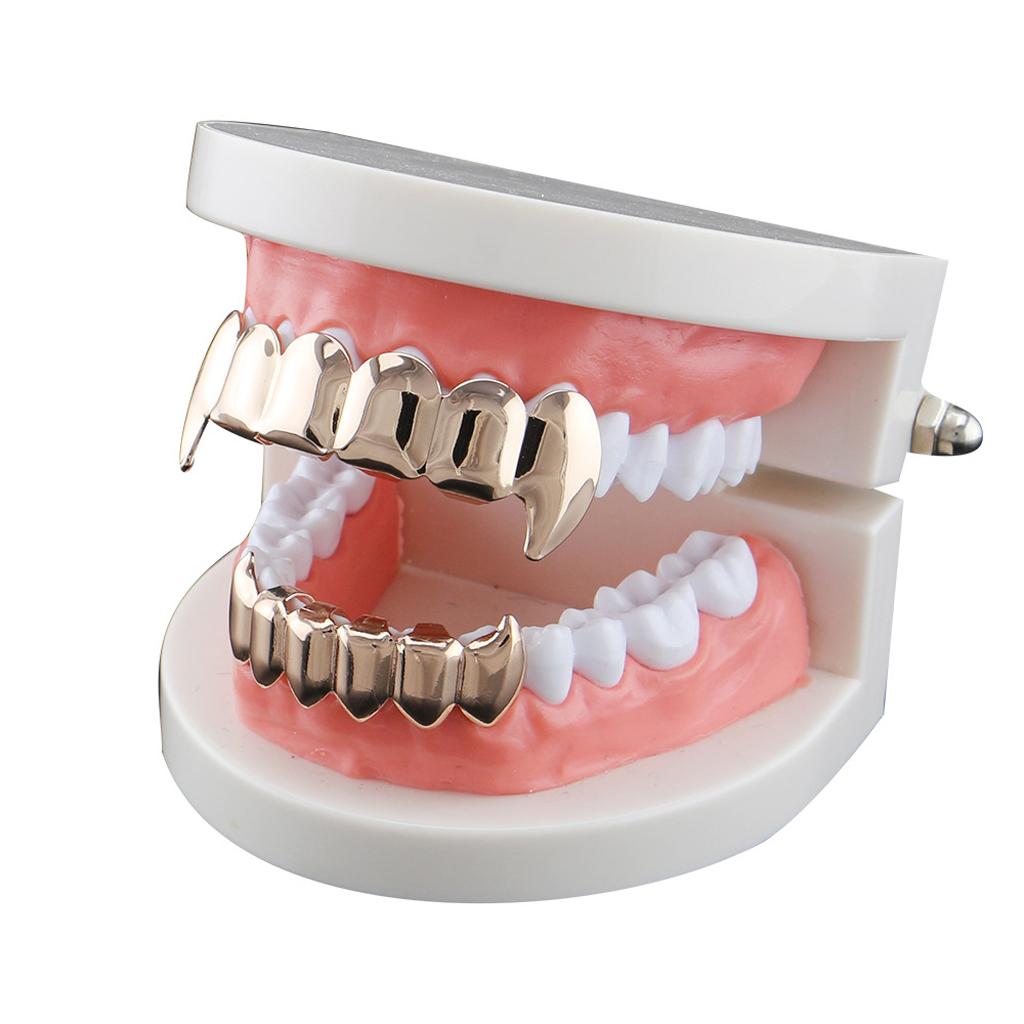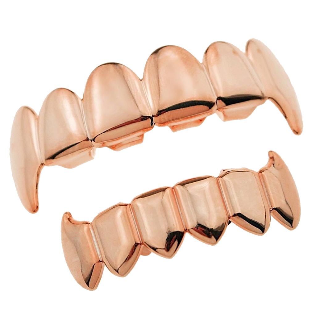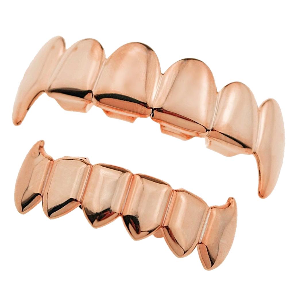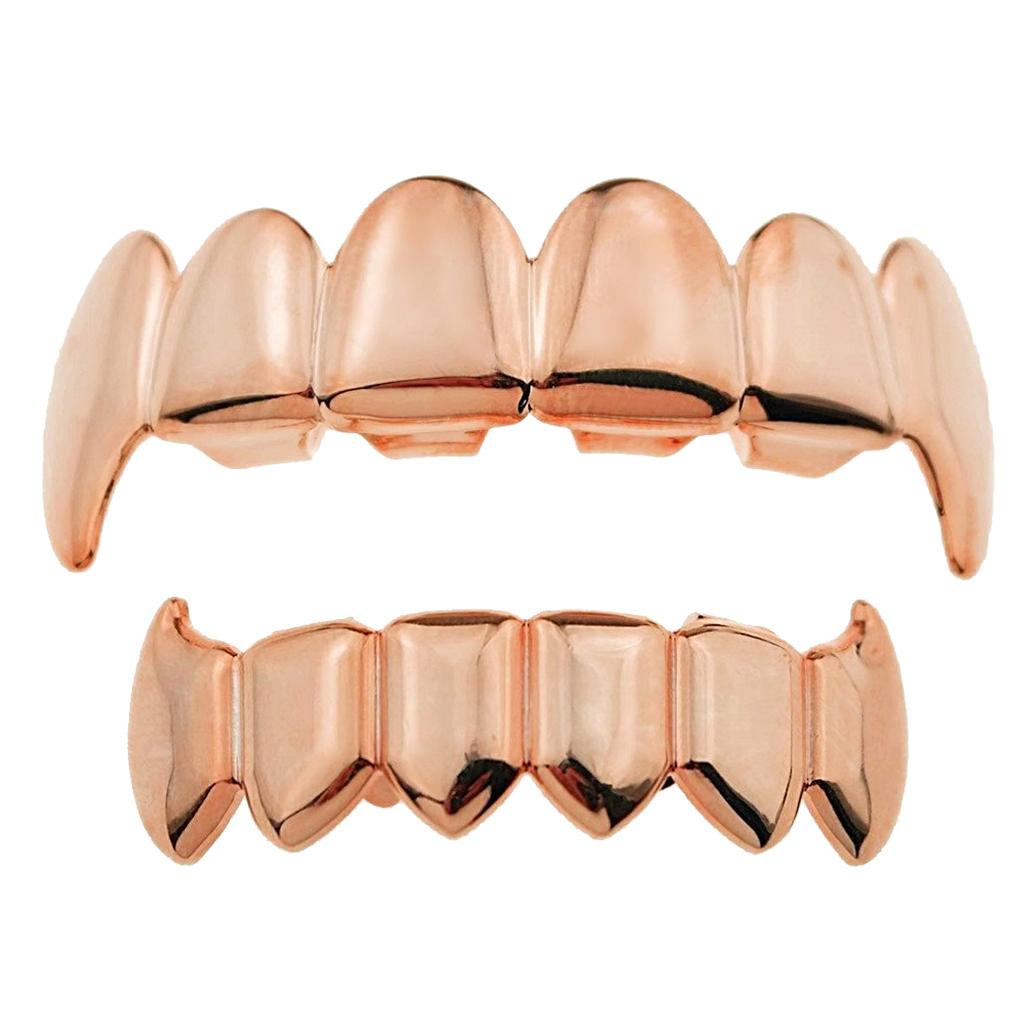 18K Golden Plated Grills 6 Fang Teeth Grill Set Halloween Cosplay Rose Gold