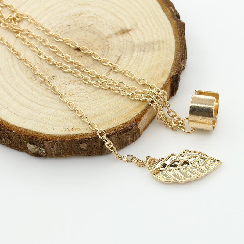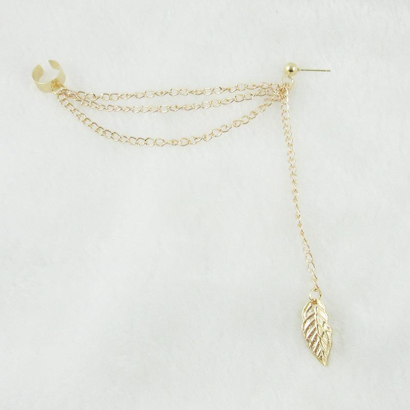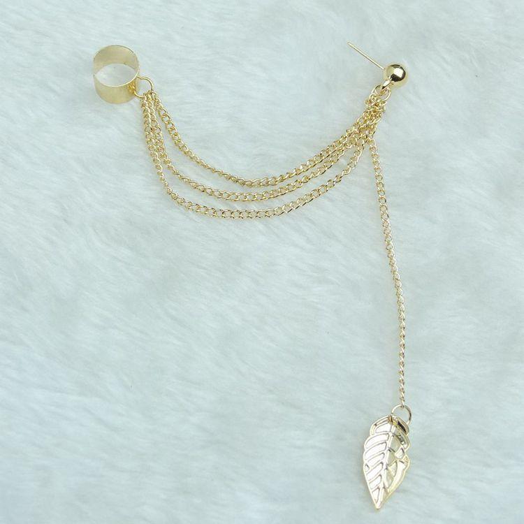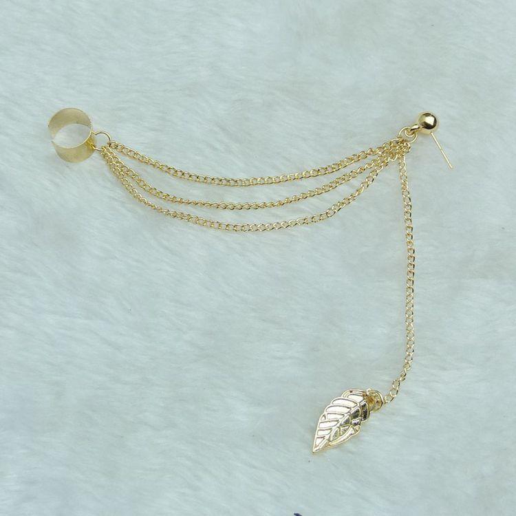 1pc Women's Stylish Tassel Leaf Embellished Ear Cuff Earring Golden
