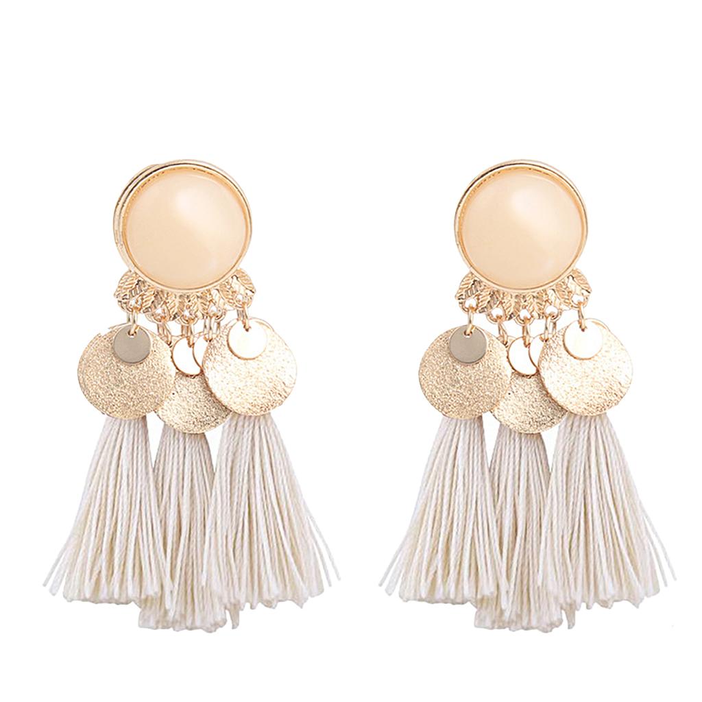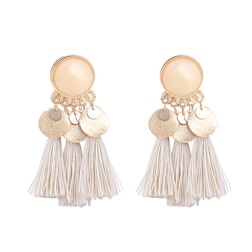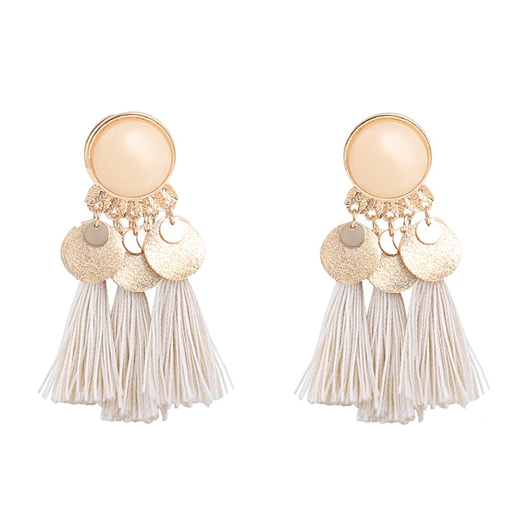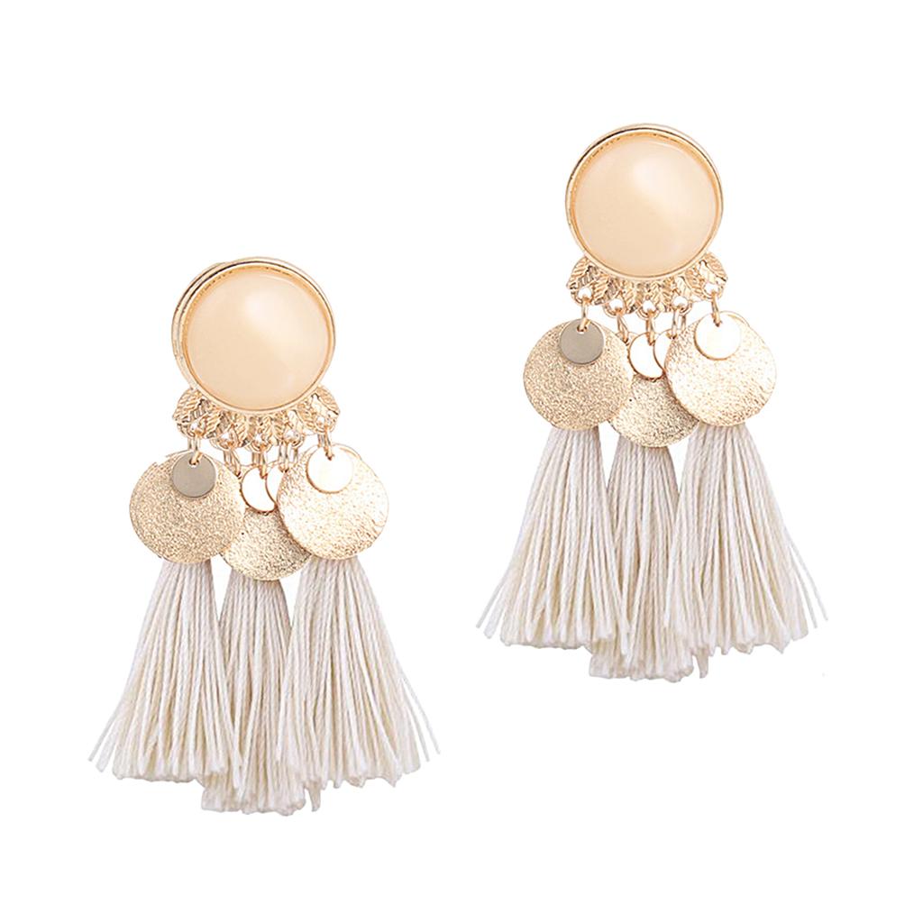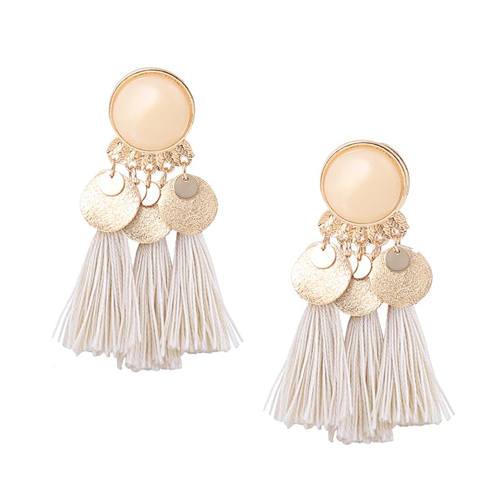 2.56in Bohemian Multicolor Tassel Earrings Fringe Drop Earrings Beige