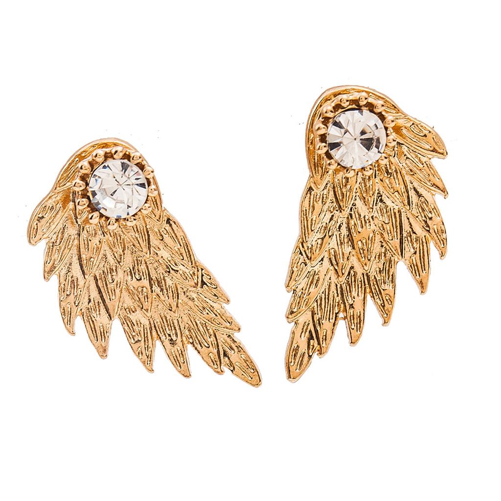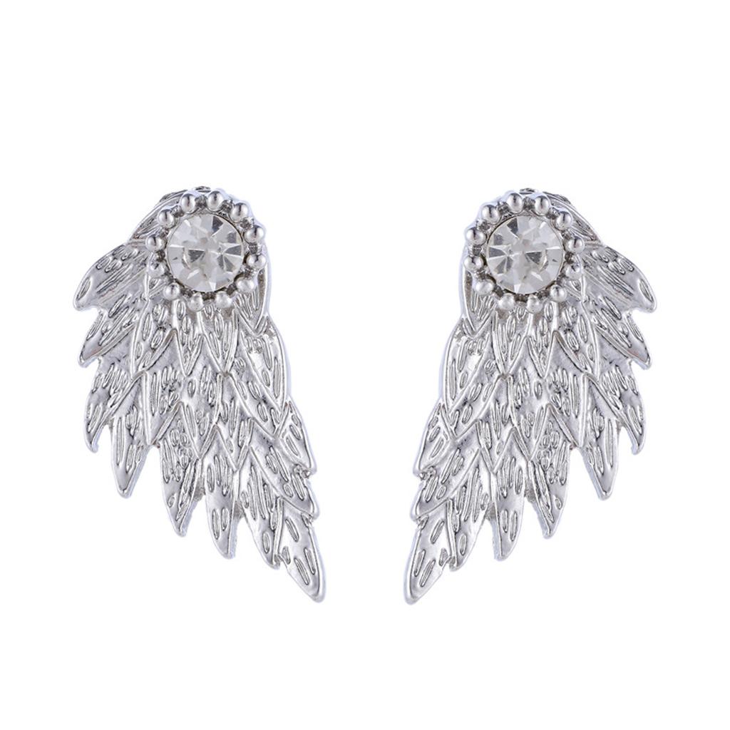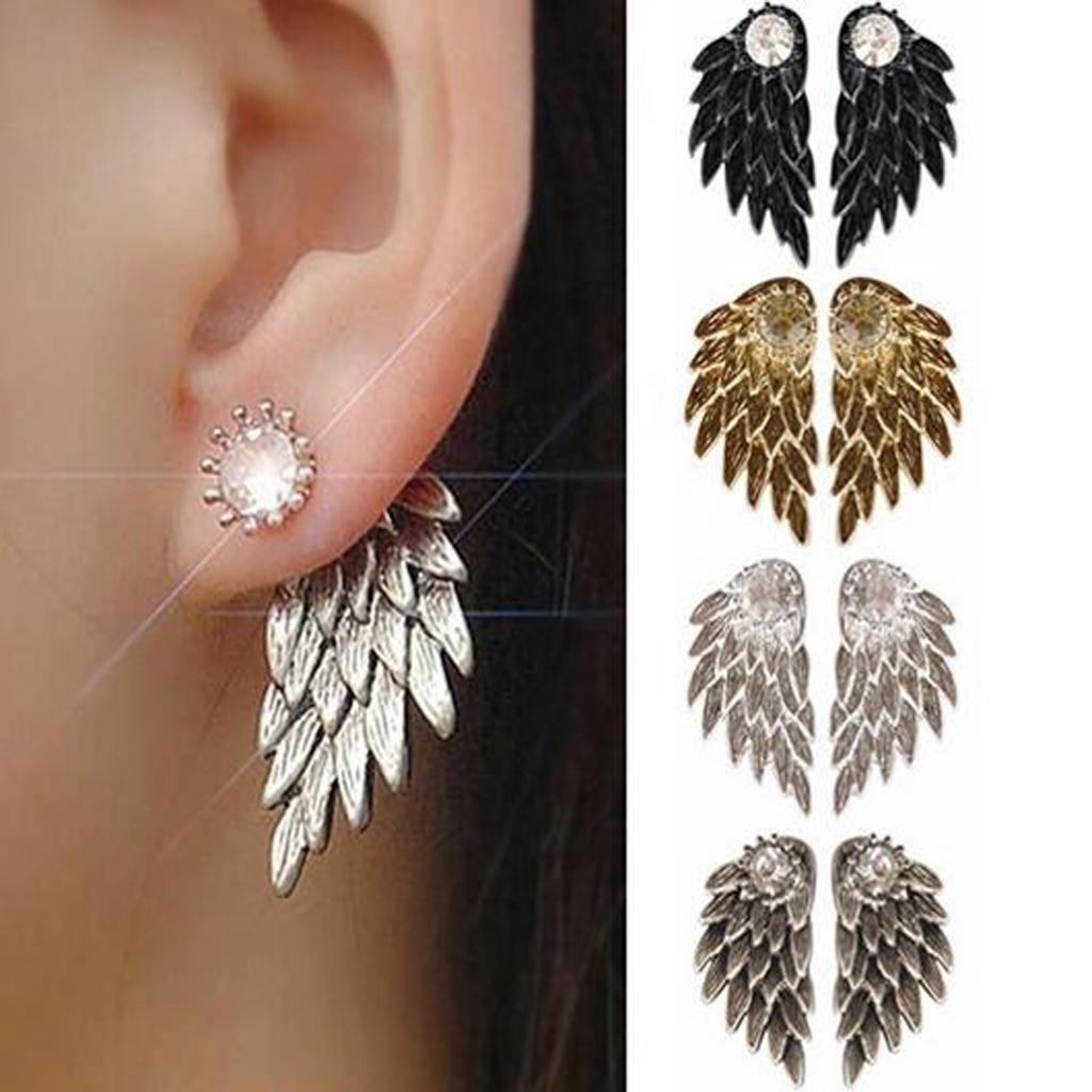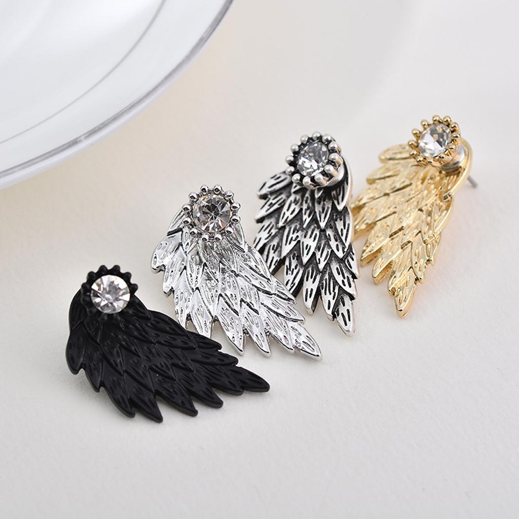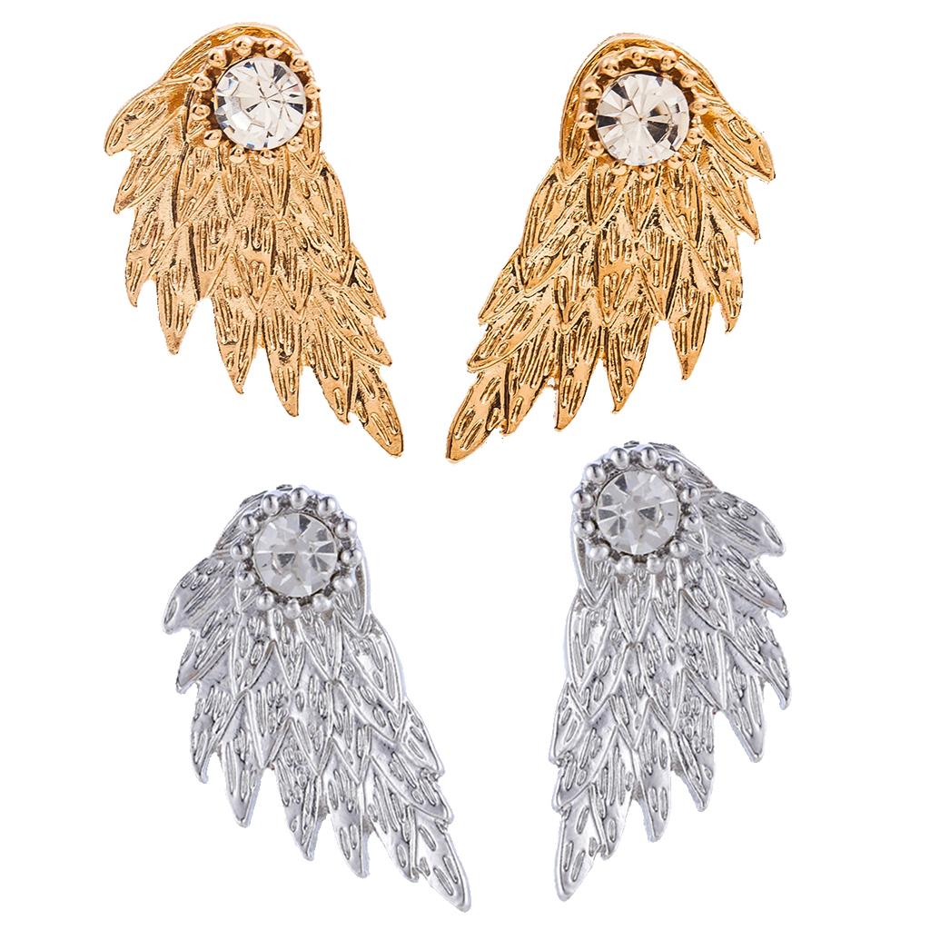 2 Pairs Fashion Women Angel Feather Wing Earrings Rhinestone Dangle Ear Stud