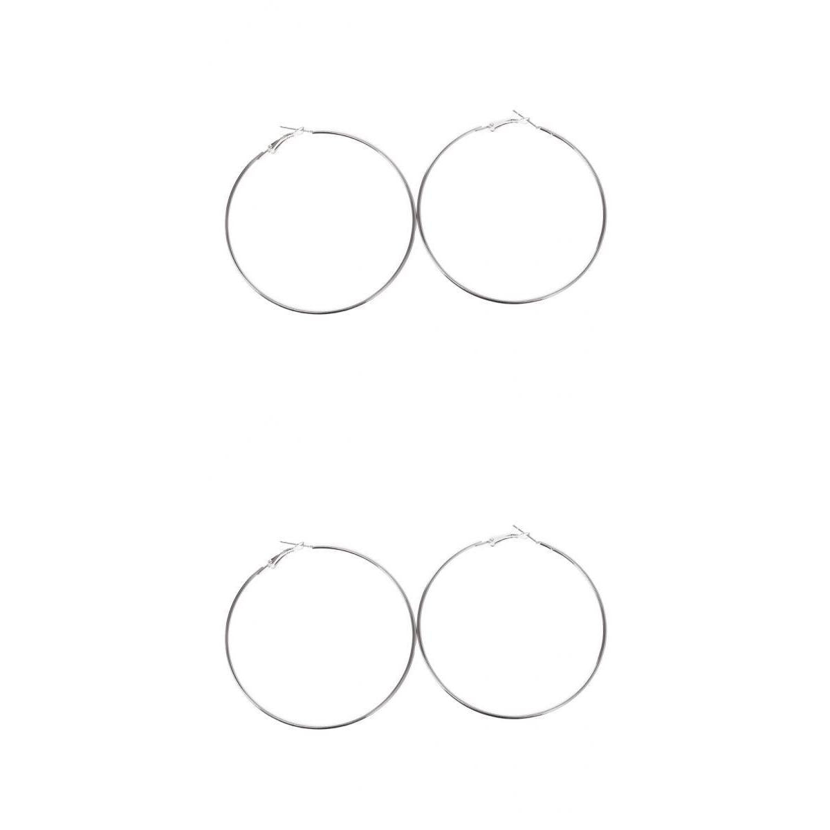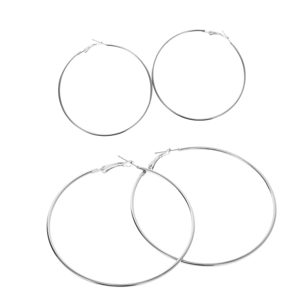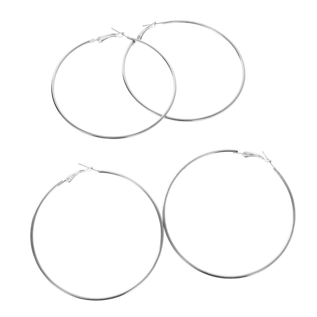 2 Pairs Silver Hoop Earrings Big Round Loop Circle Drop Ear Dangle 60mm 70mm
