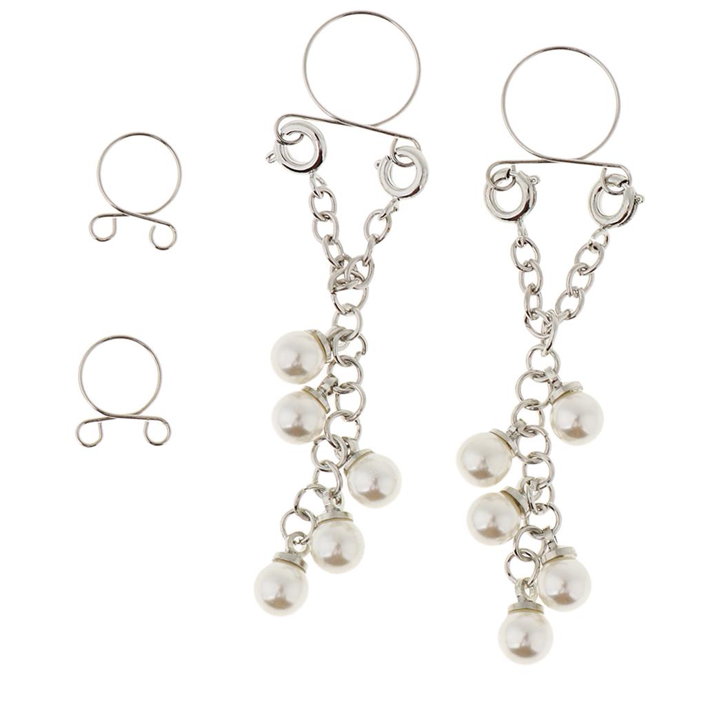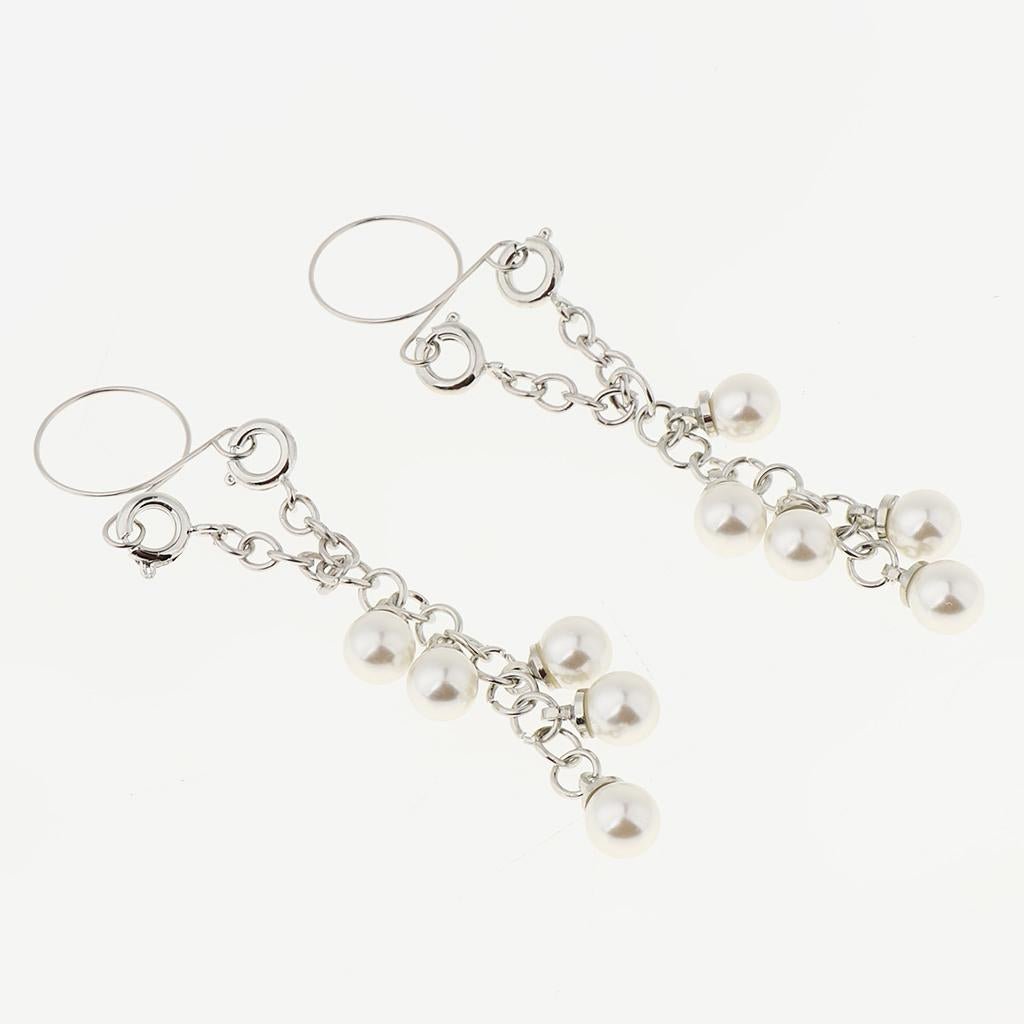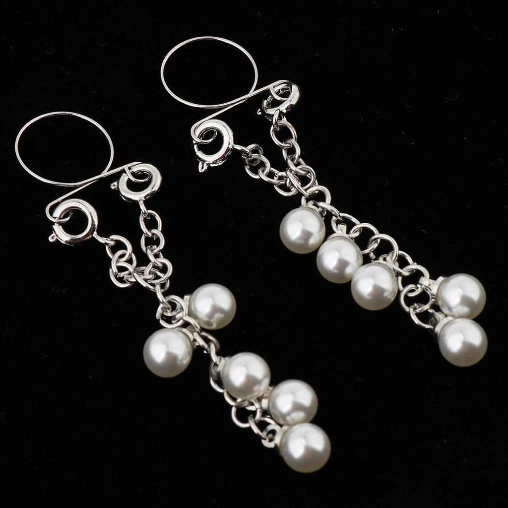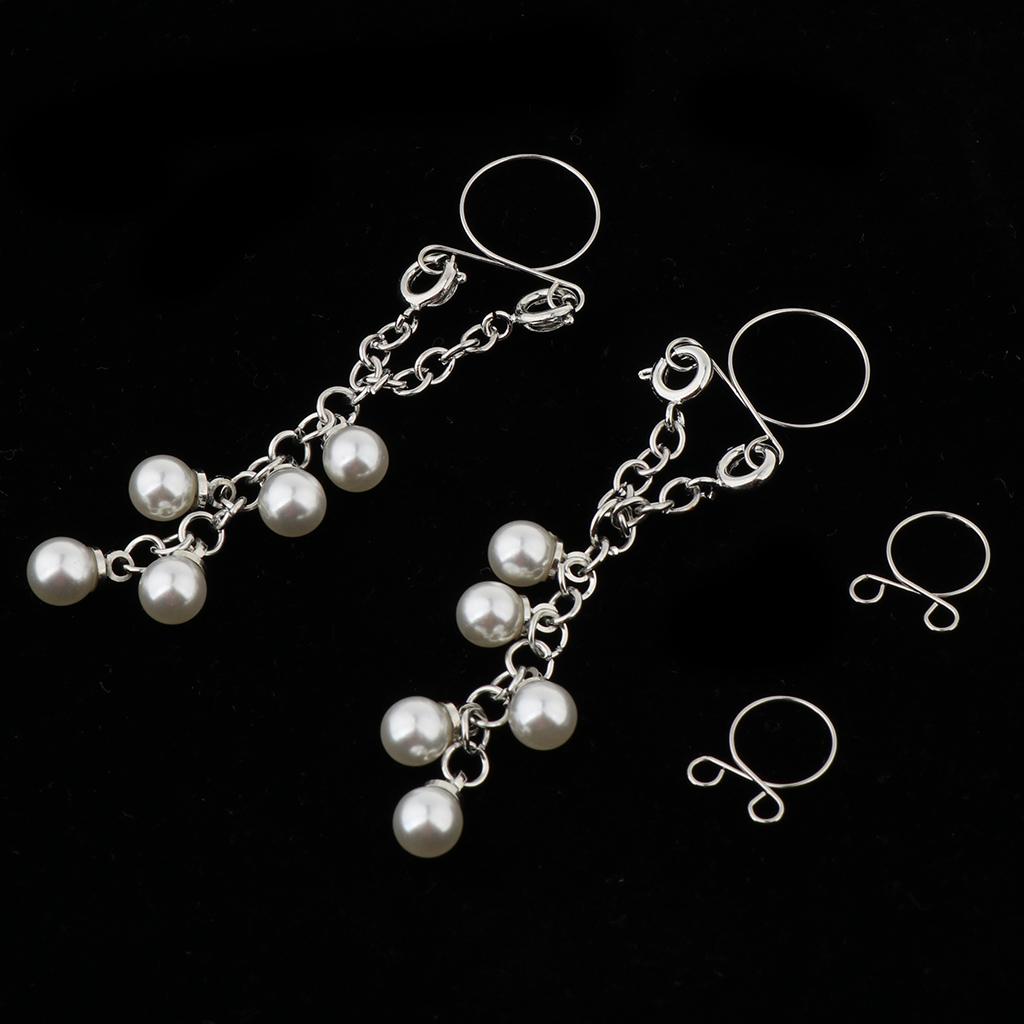 Non-piercing ring with white faux pearl beads clip on body jewelry.