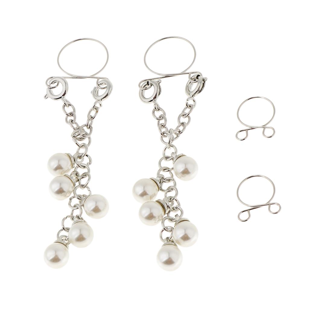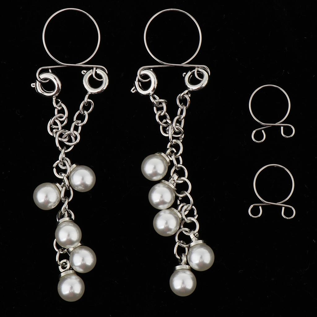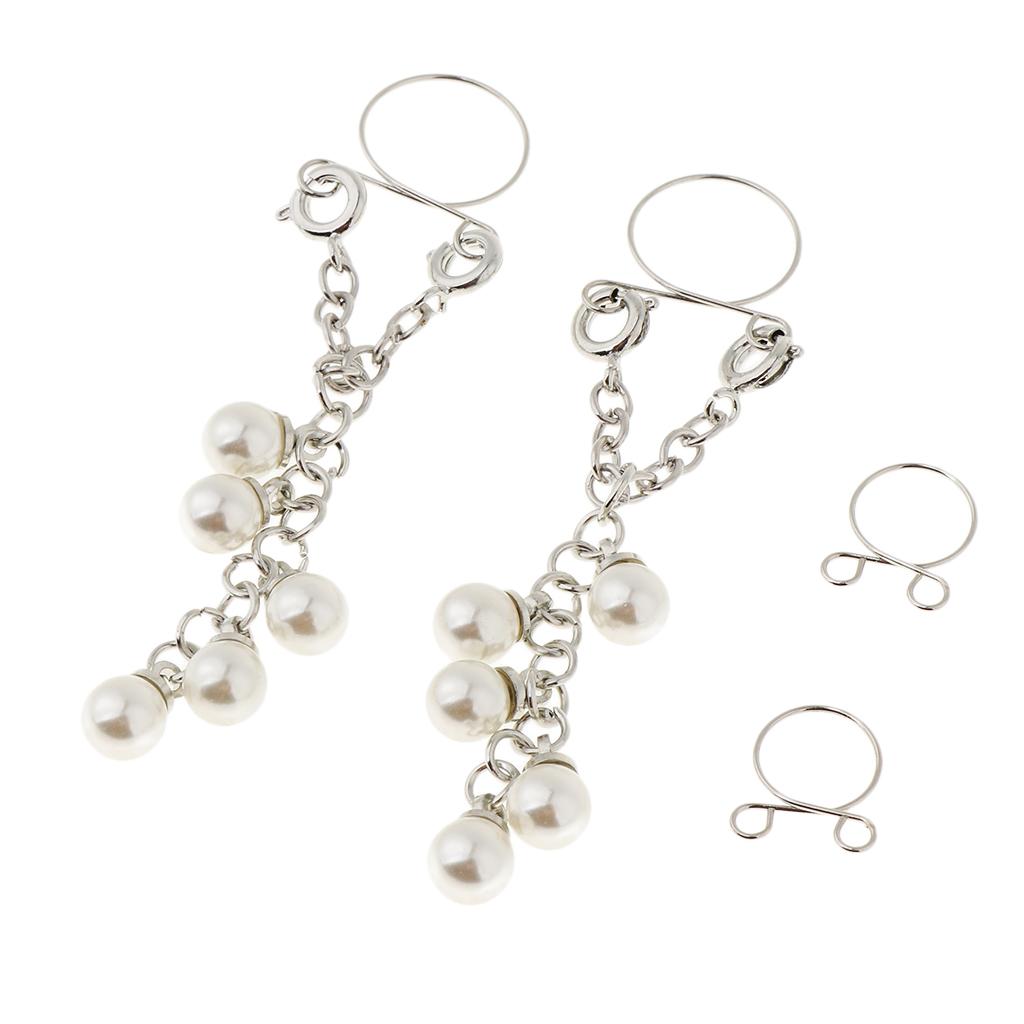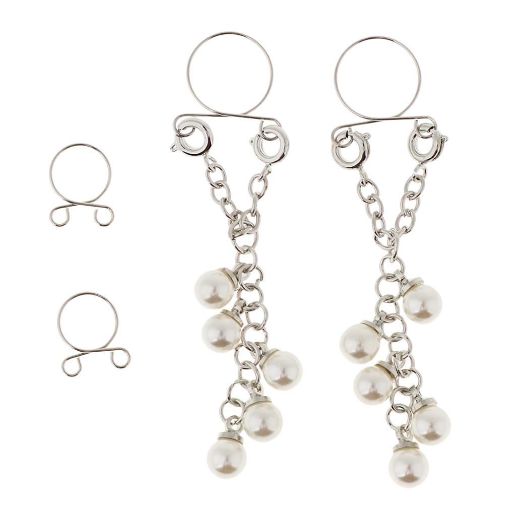 Non-piercing ring with white faux pearl beads clip on body jewelry.