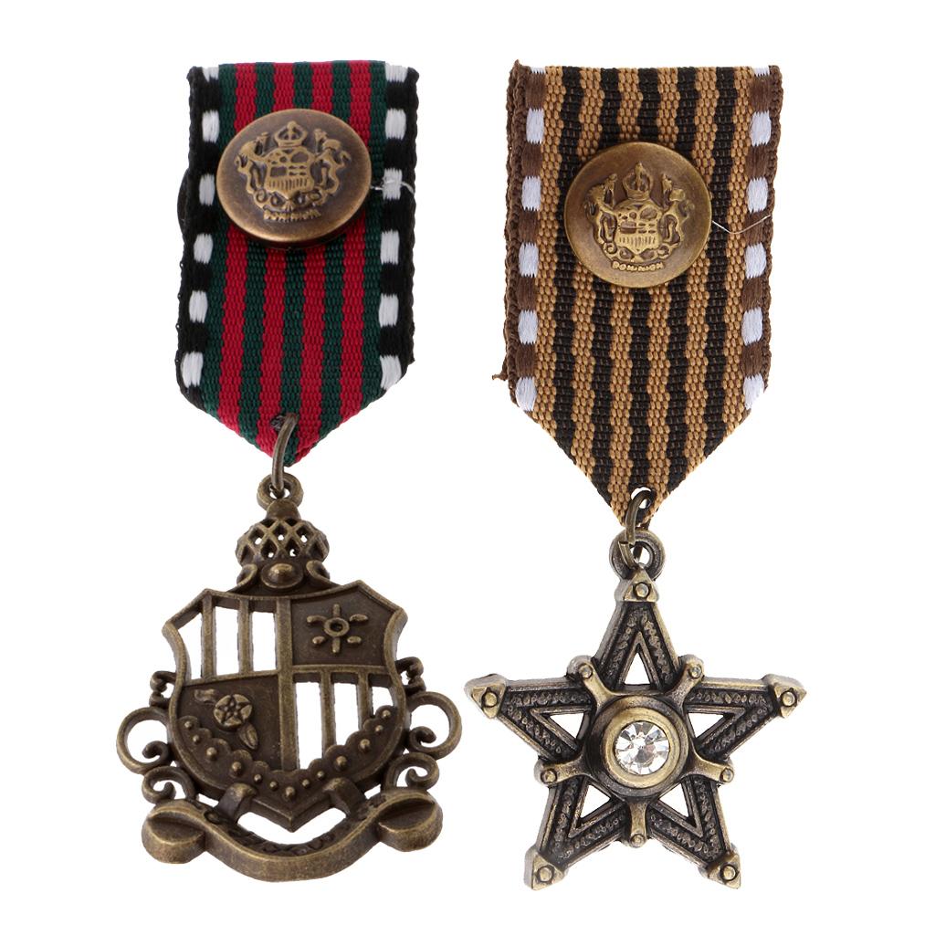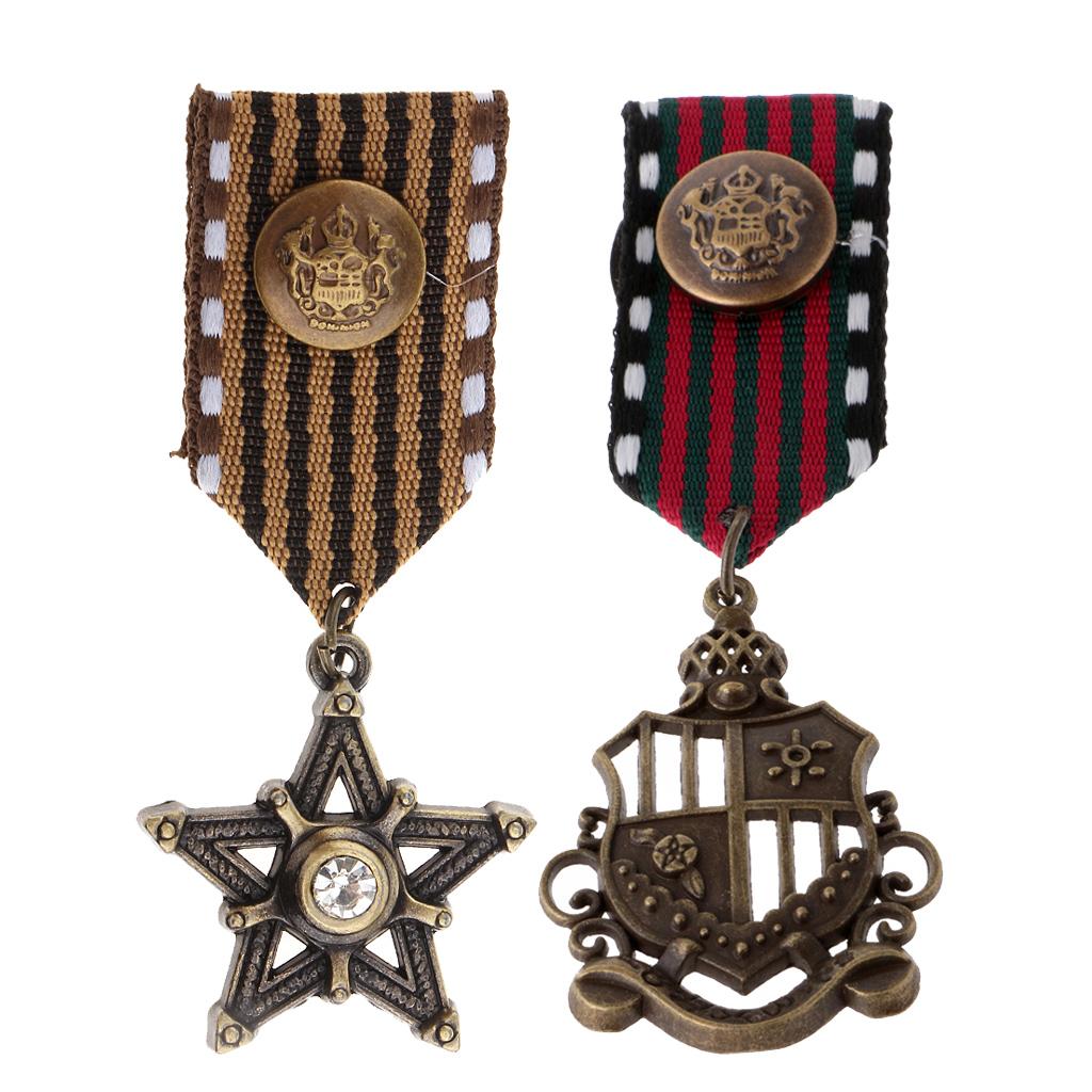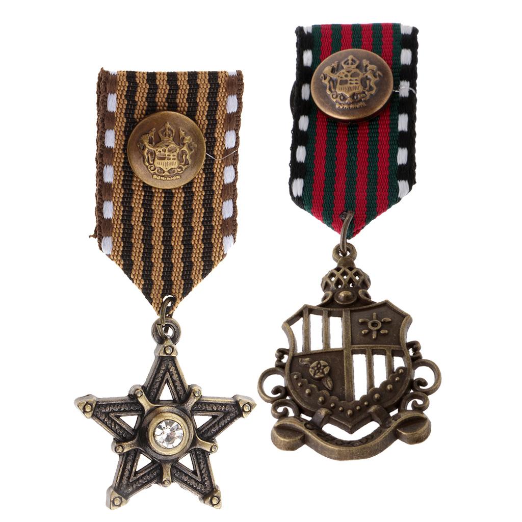 2 Piece/Lot Medal Badge Military Rock Punk Biker Clothing Costume Brooch Pin