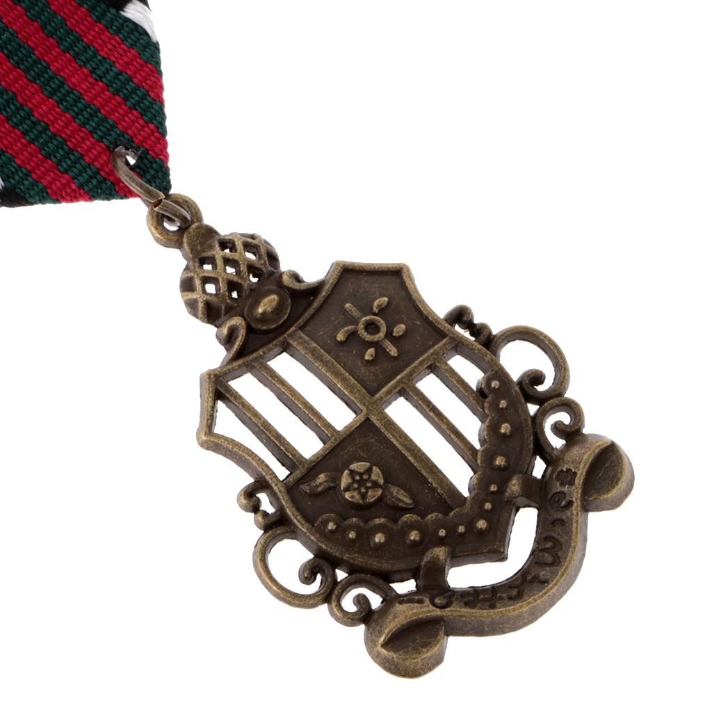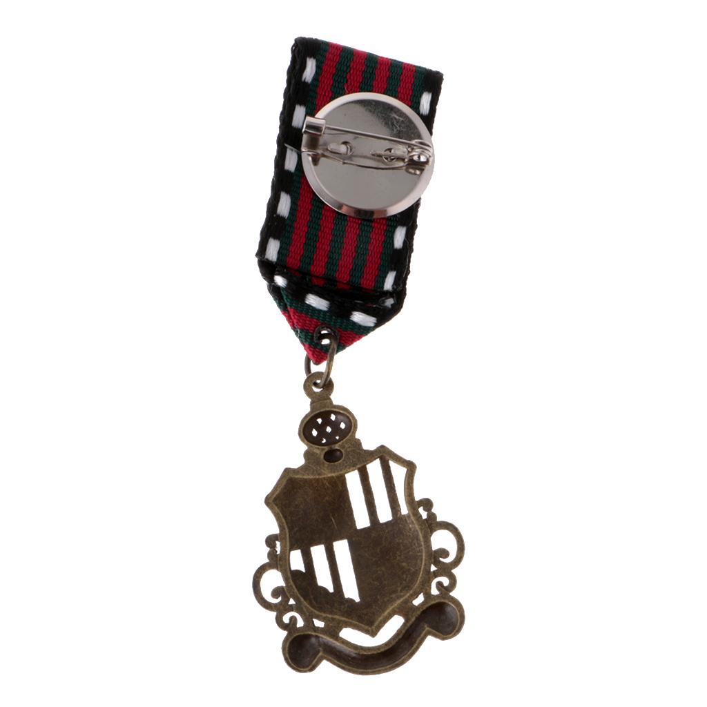 Perfect for fancy dress costume parties, srape medal ribbon brooch pin with vintage steampunk pendant.