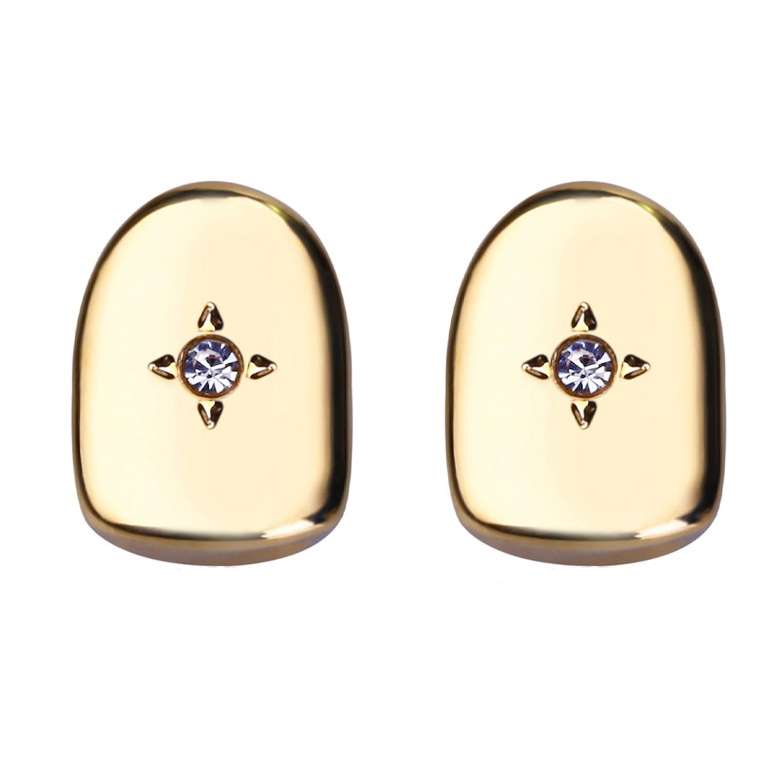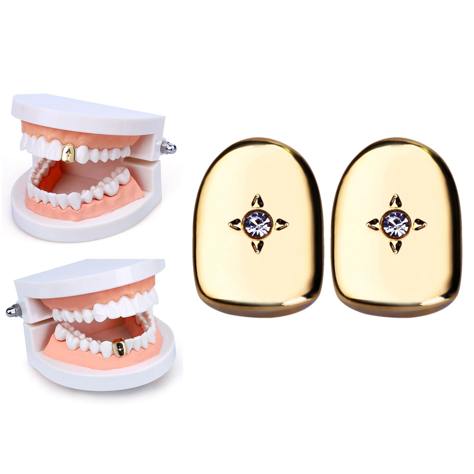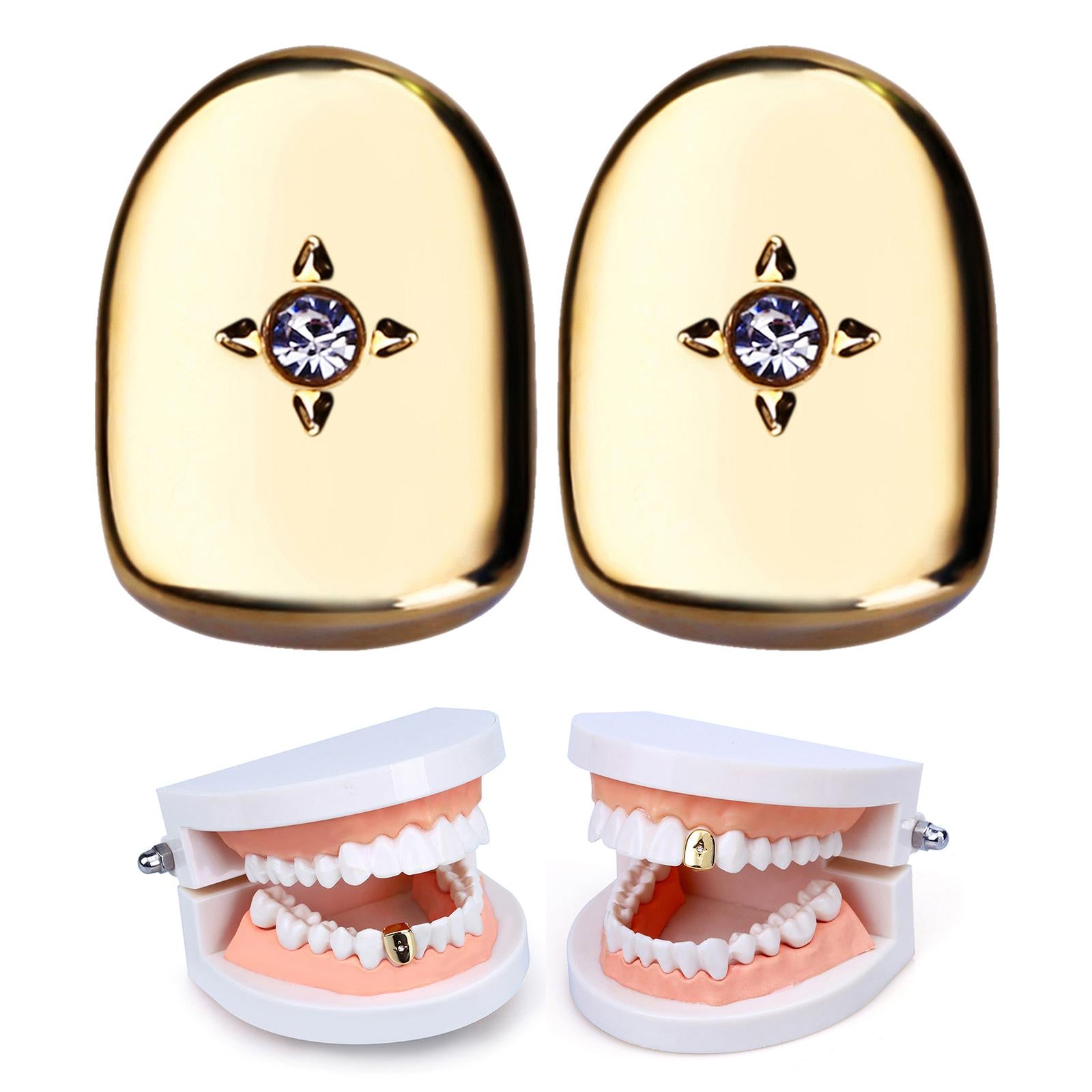 2 Pieces 18K Copper CZ Hip-Hop Rapper Mouth Caps Teeth Cosplay Gold