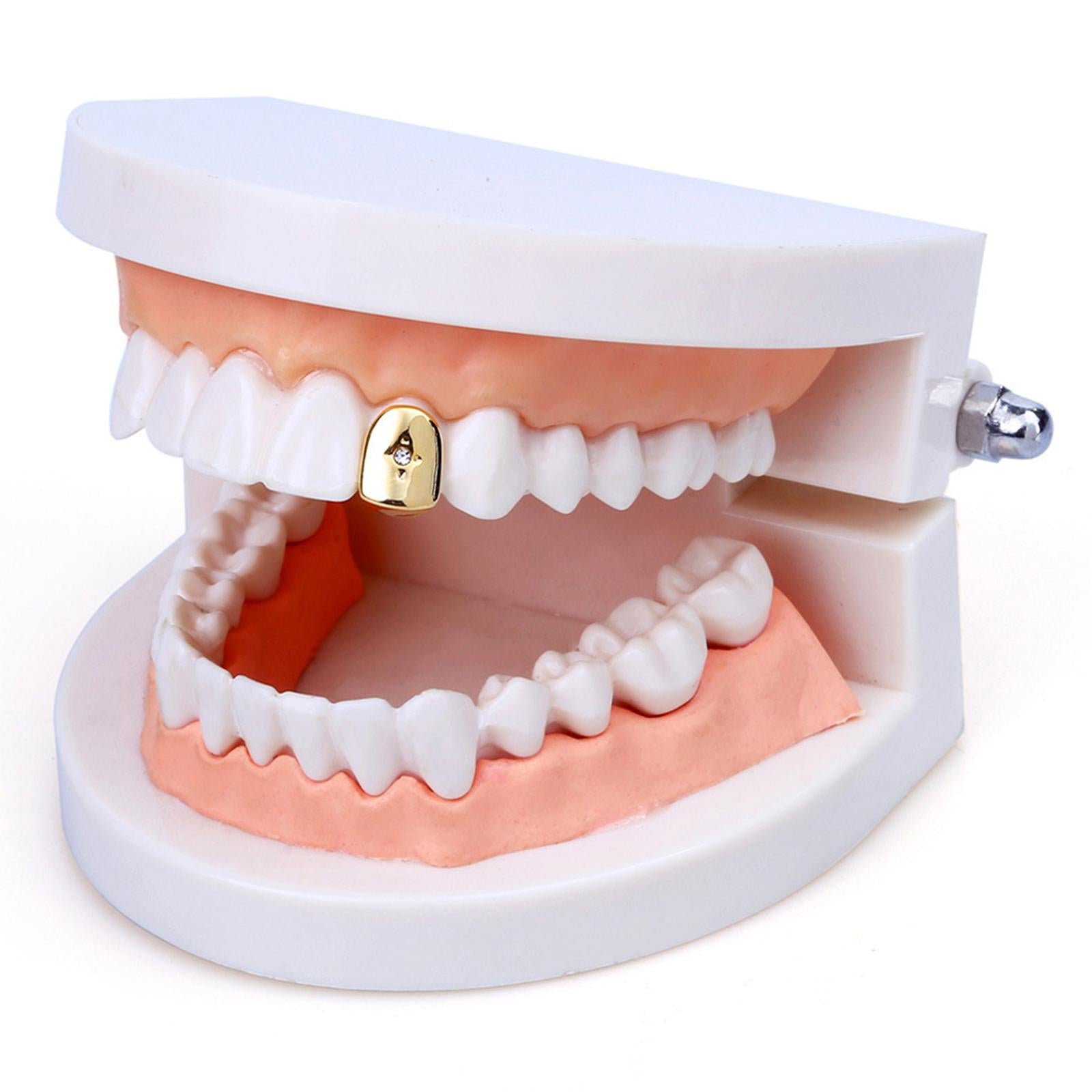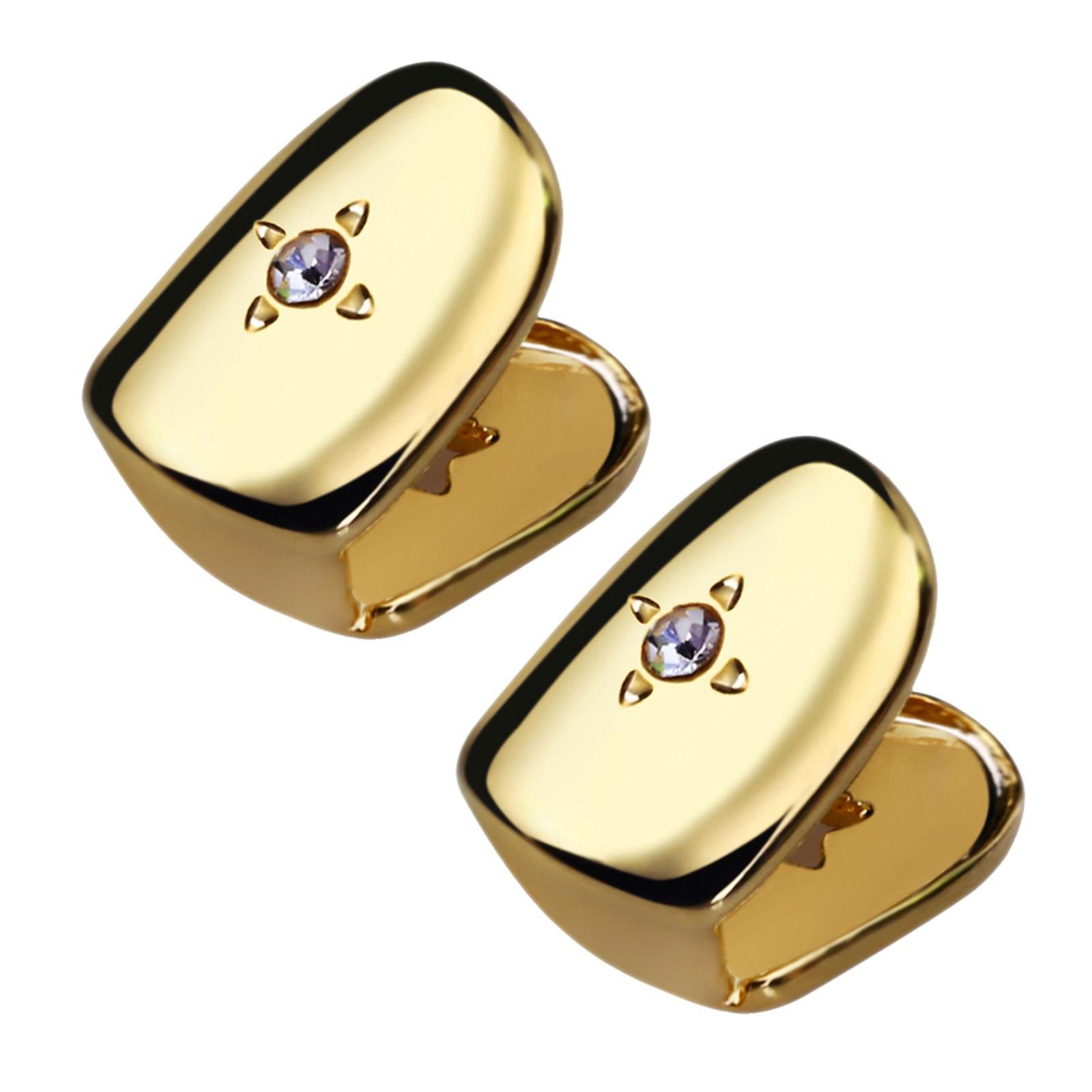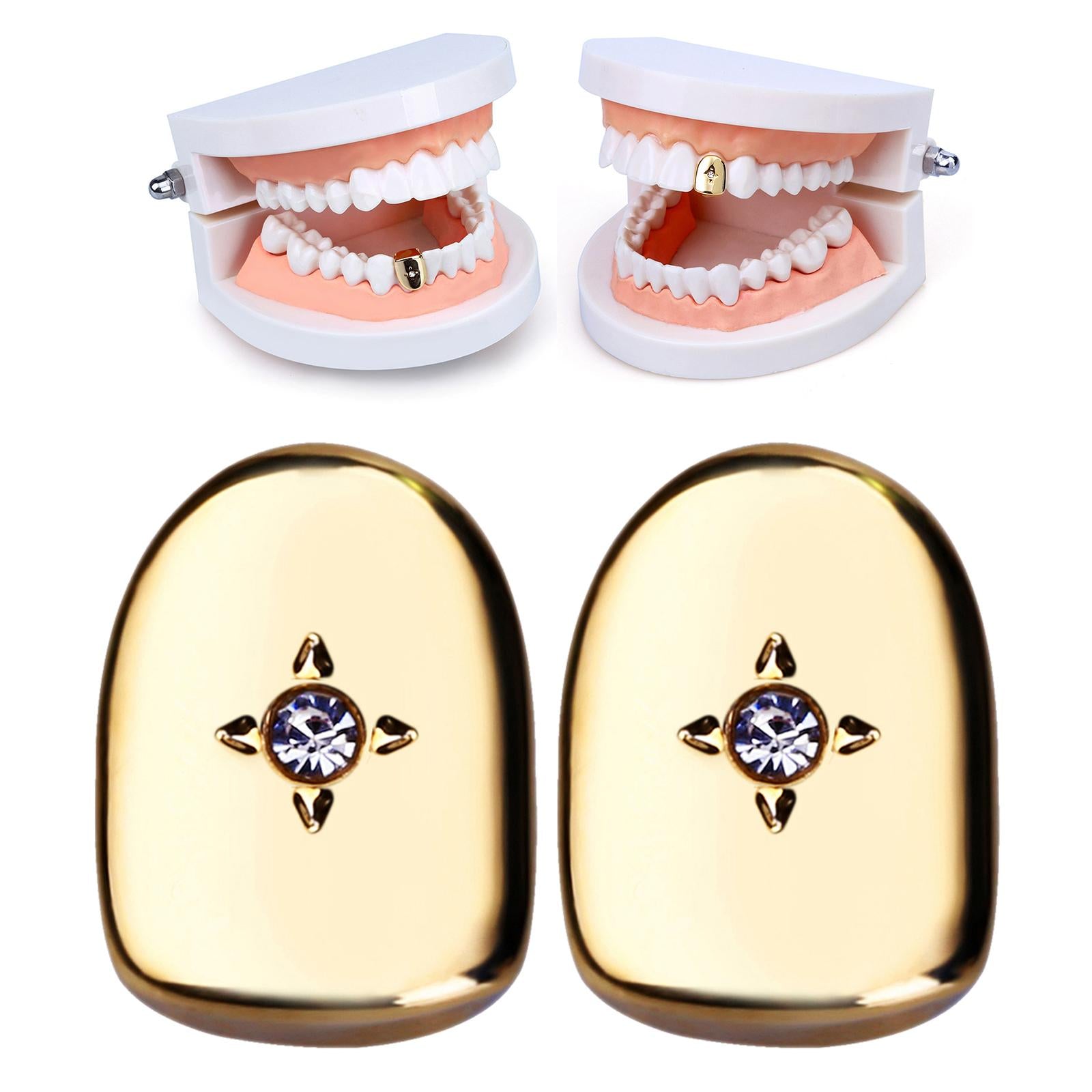 2 Pieces 18K Copper CZ Hip-Hop Rapper Mouth Caps Teeth Cosplay Gold