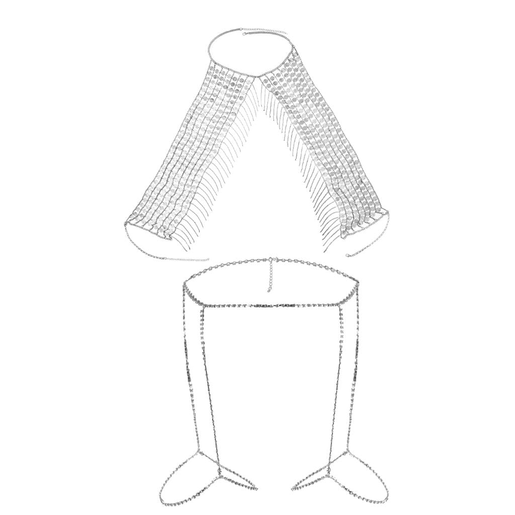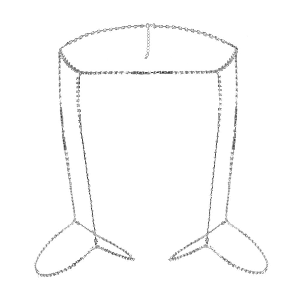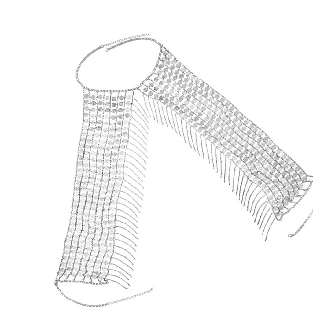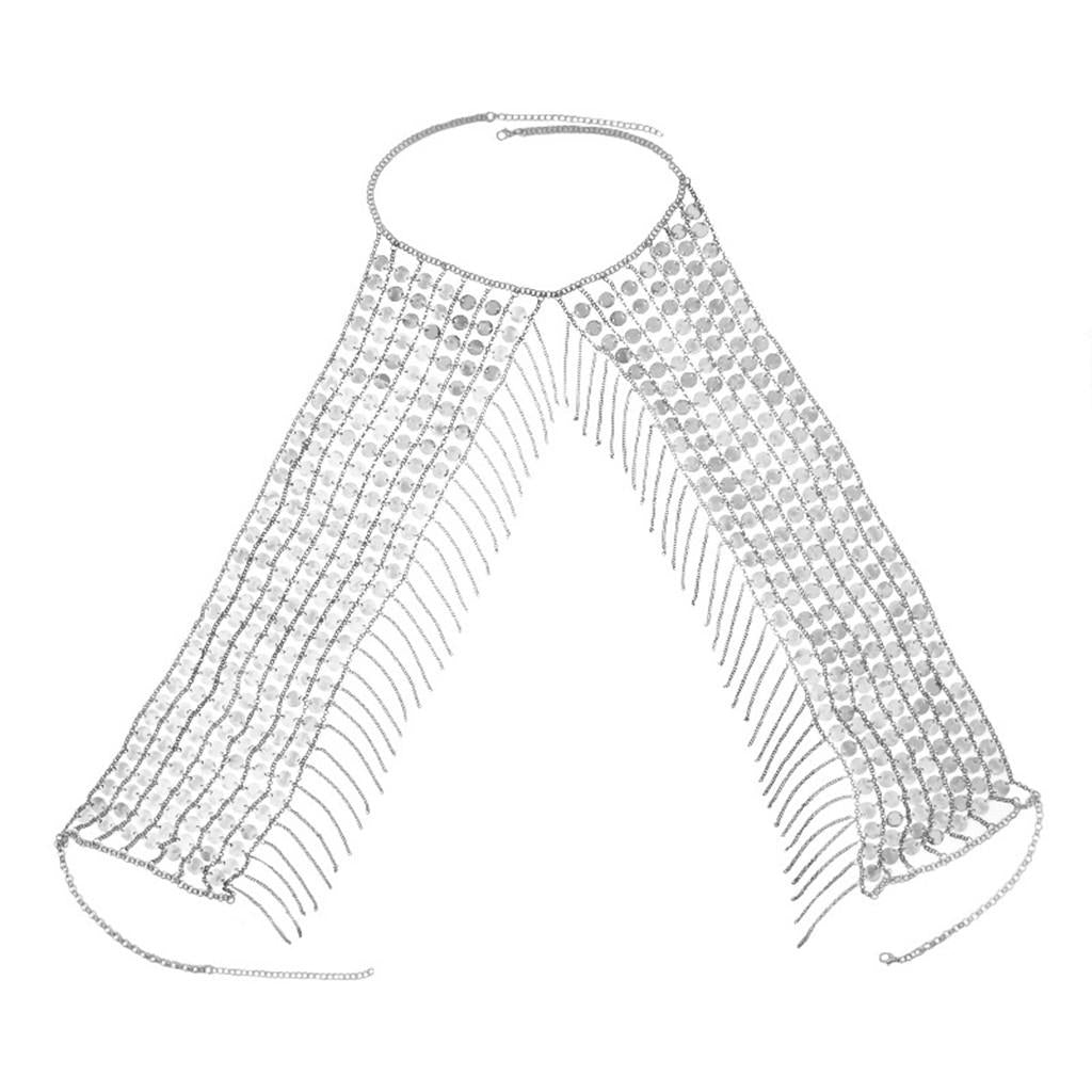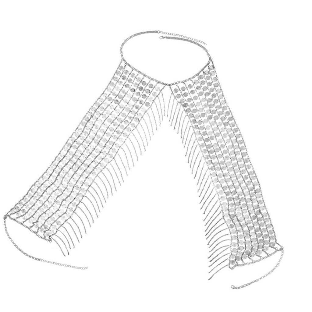 Multilayer cross tassel sequins body chain belts necklaces with charming eye-catching rhinestone thigh chain for womens gilrs;