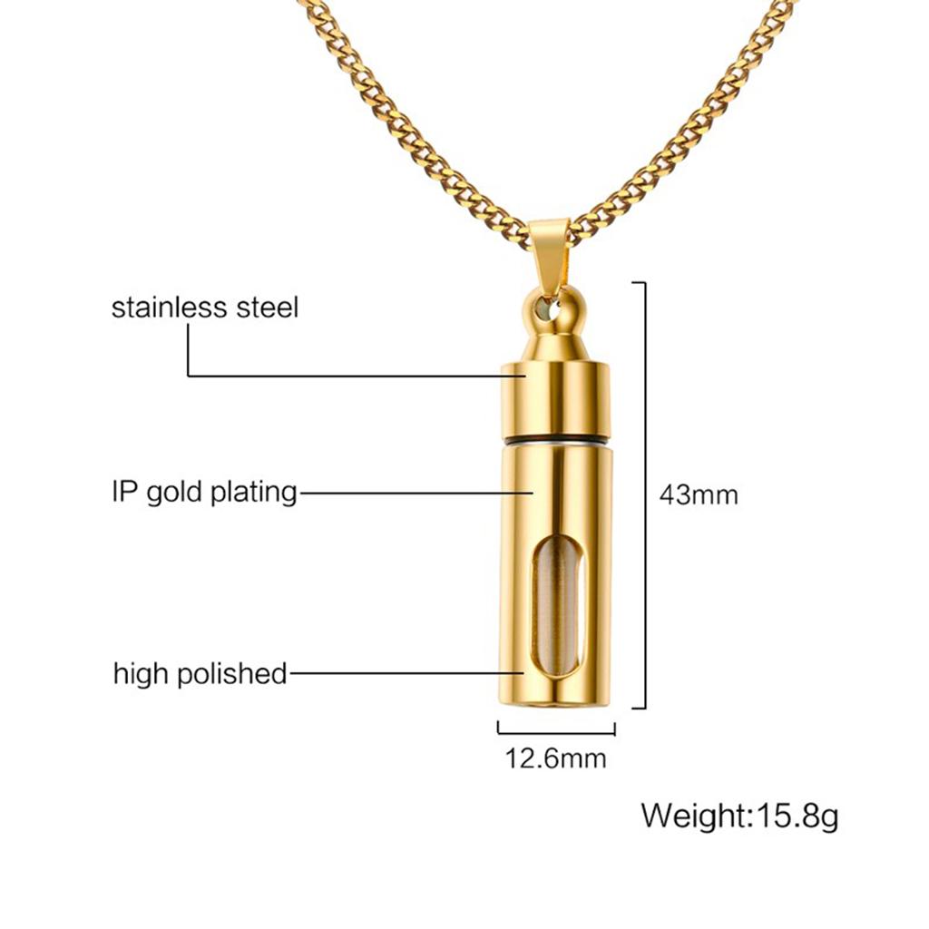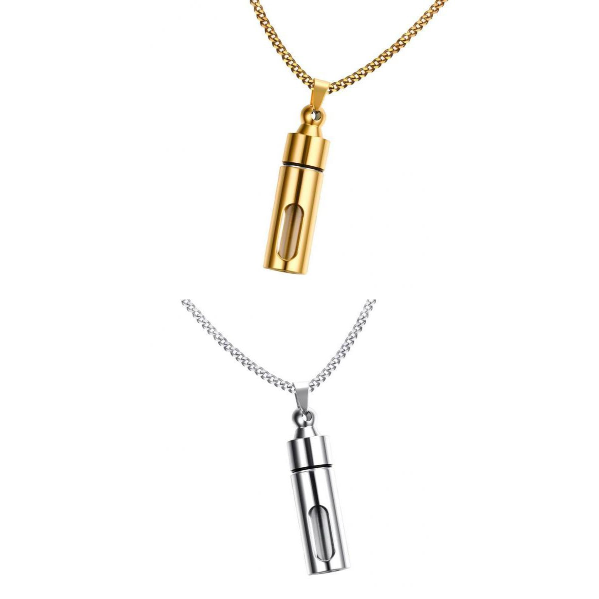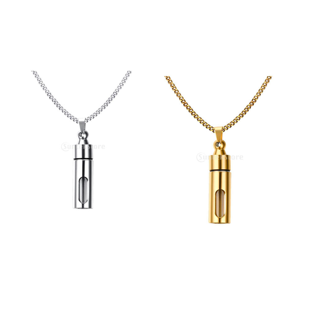 2 Pieces Stainless Steel Keepsake Bottle Holder Pendant Necklace Gold/Silver
