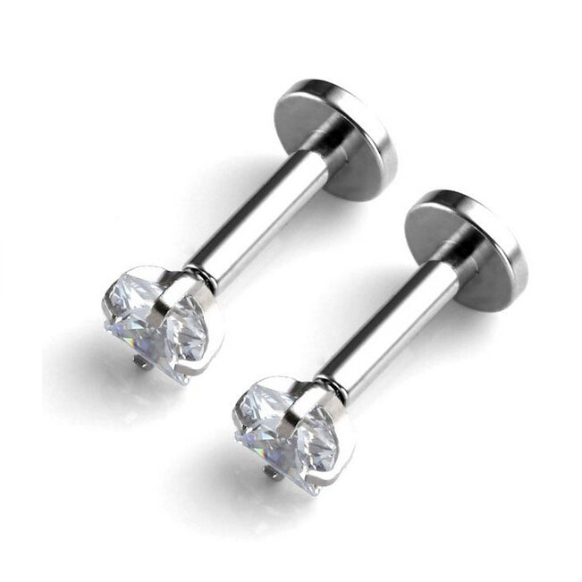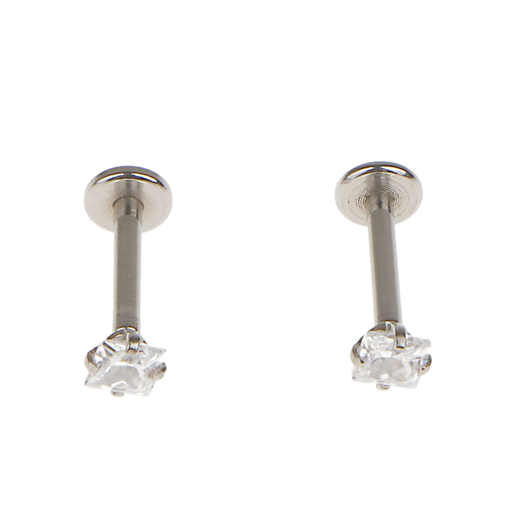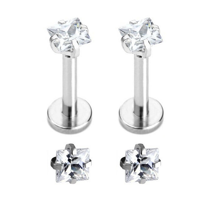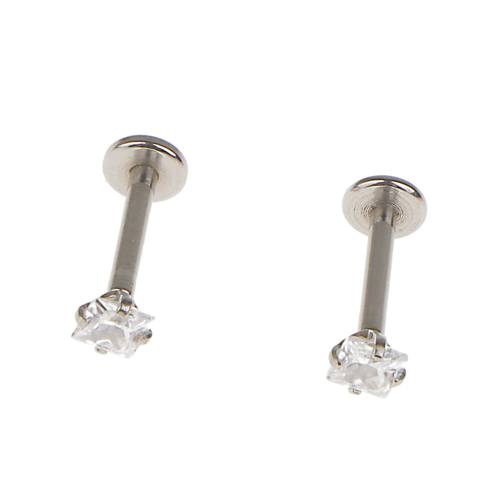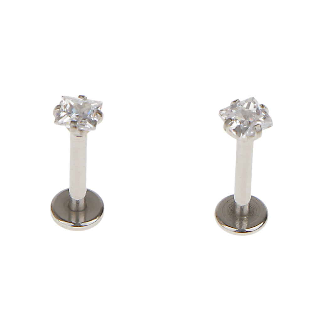 2 Stainless Steel Square Zircon Cartilage Helix Tragus Lip Earring Stud 8mm