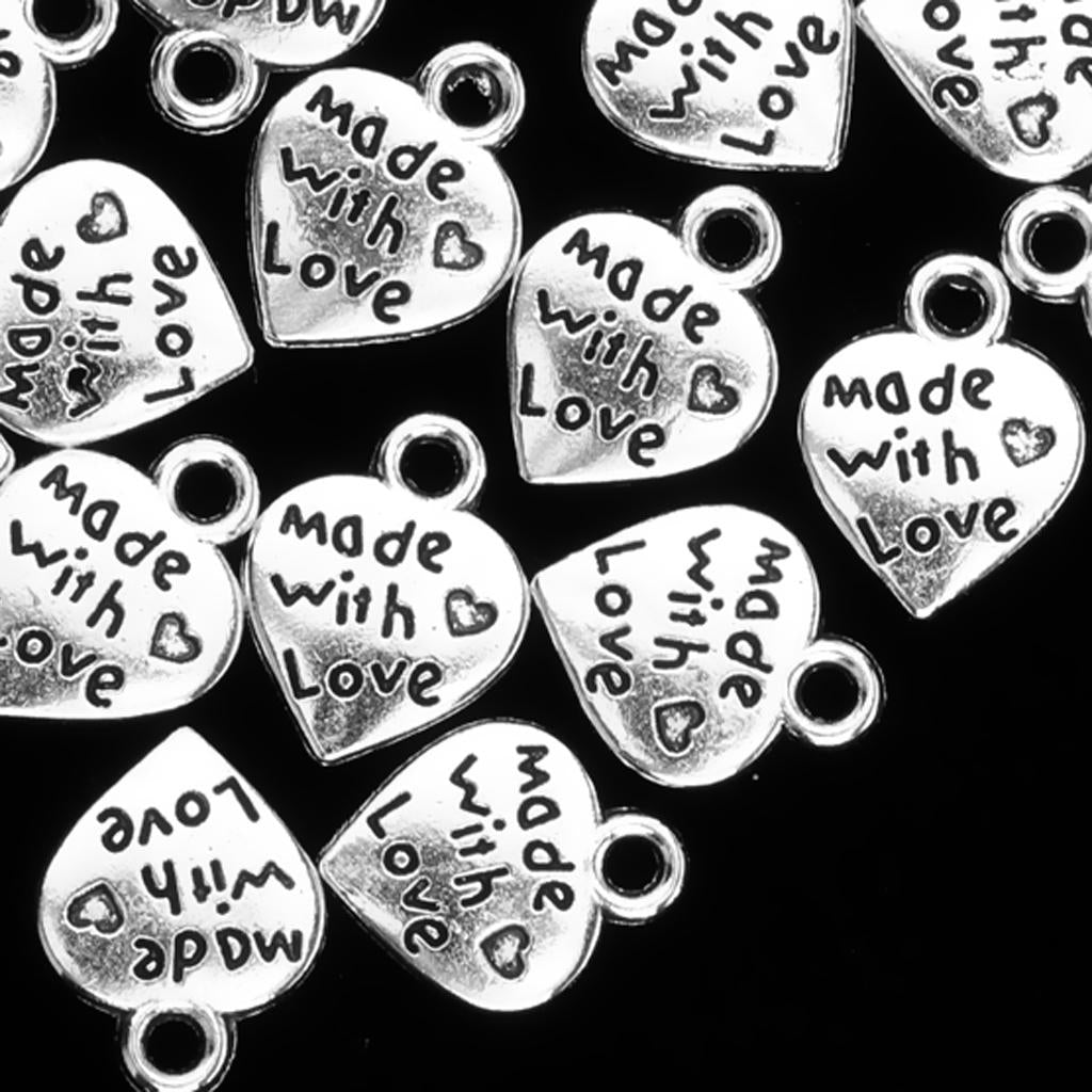 Retro charms 'Made With Love' heart pendants for jewelry DIY making.