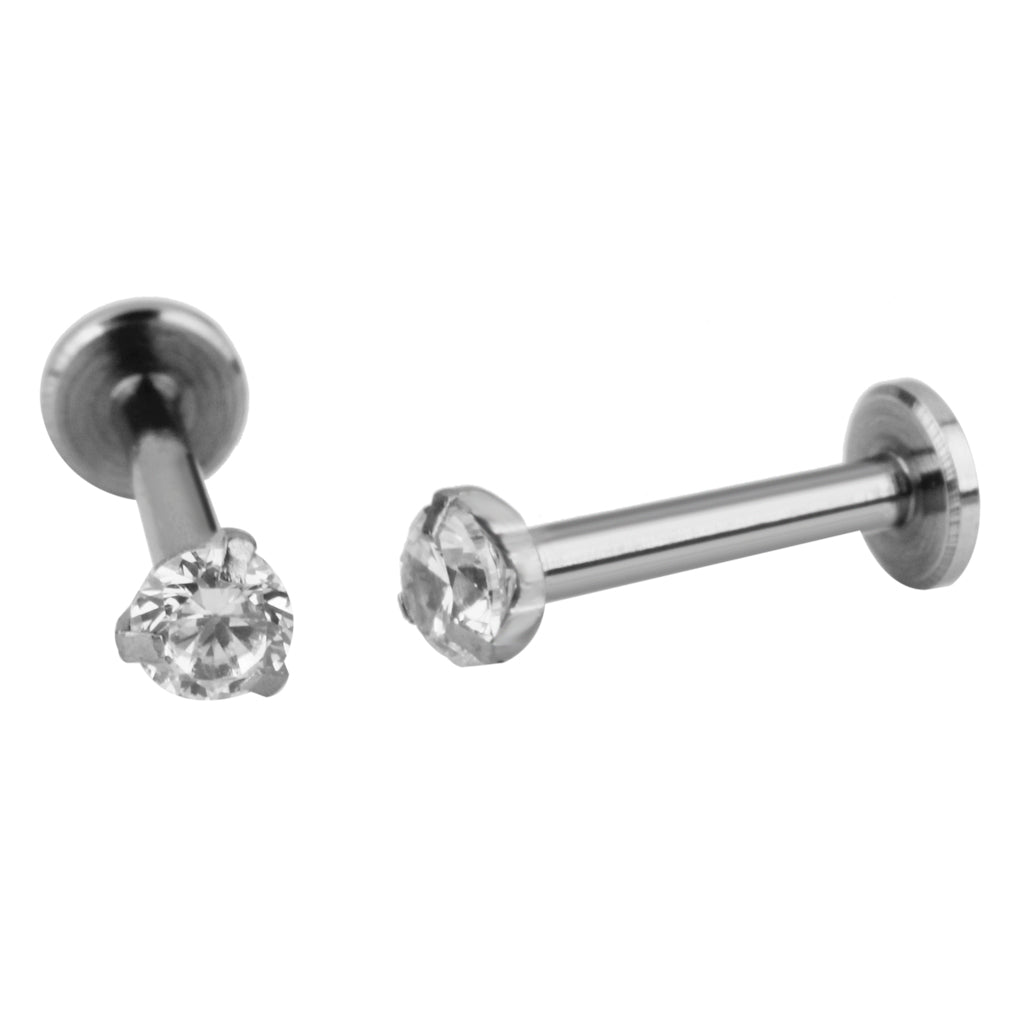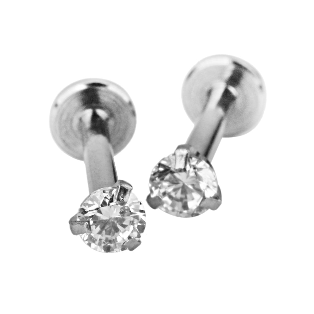 2pc Stainless Steel Round Zircon Cartilage Helix Tragus Lip Earring Stud 8mm