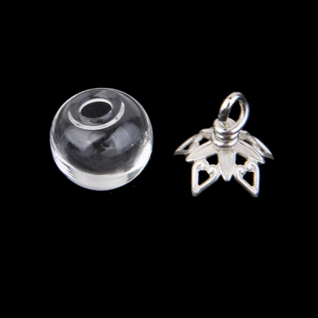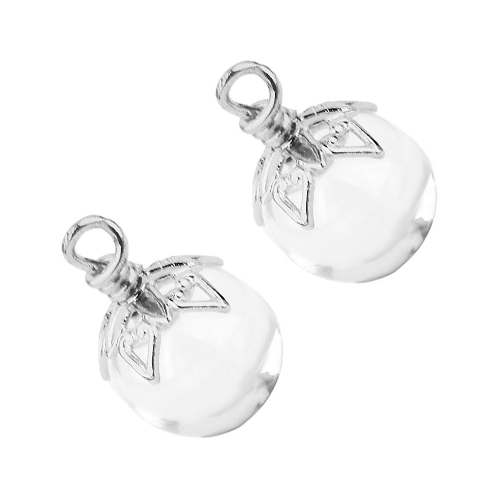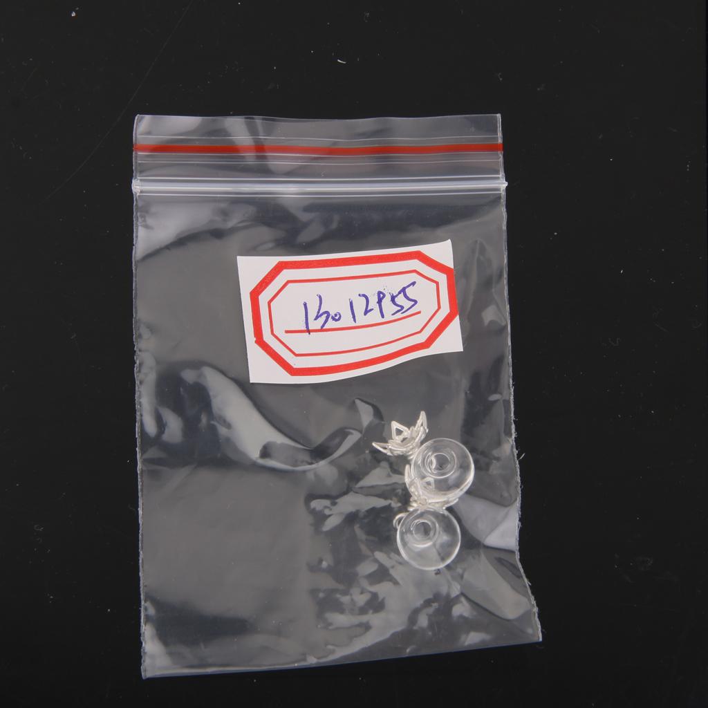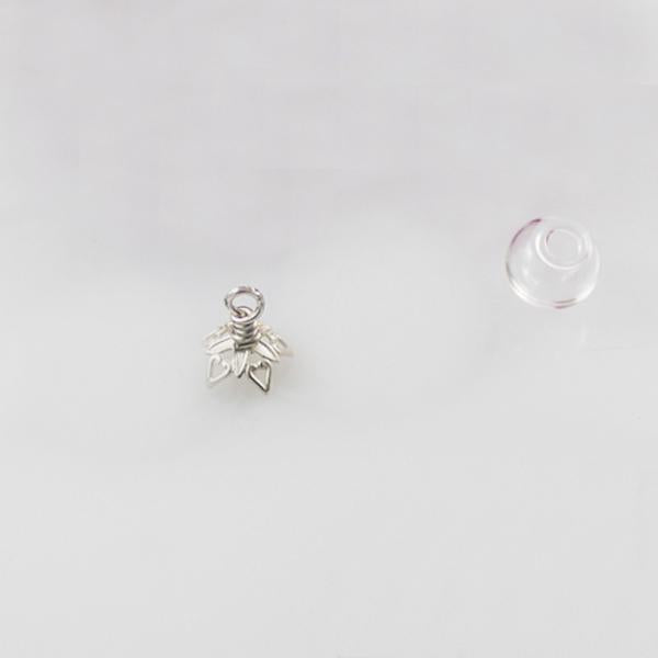 2Pcs Mini Glass Bottle Jars Vials Wishing Bottle Pendant Silver Flower Cap