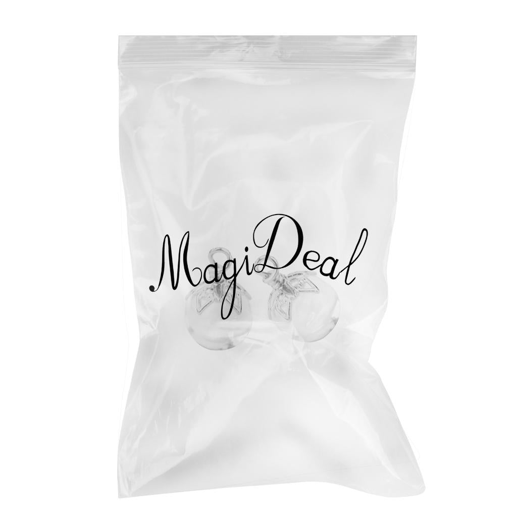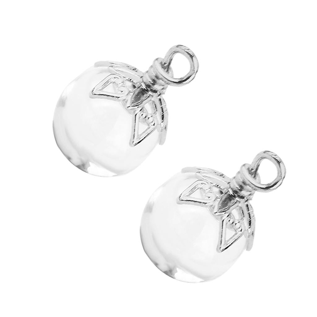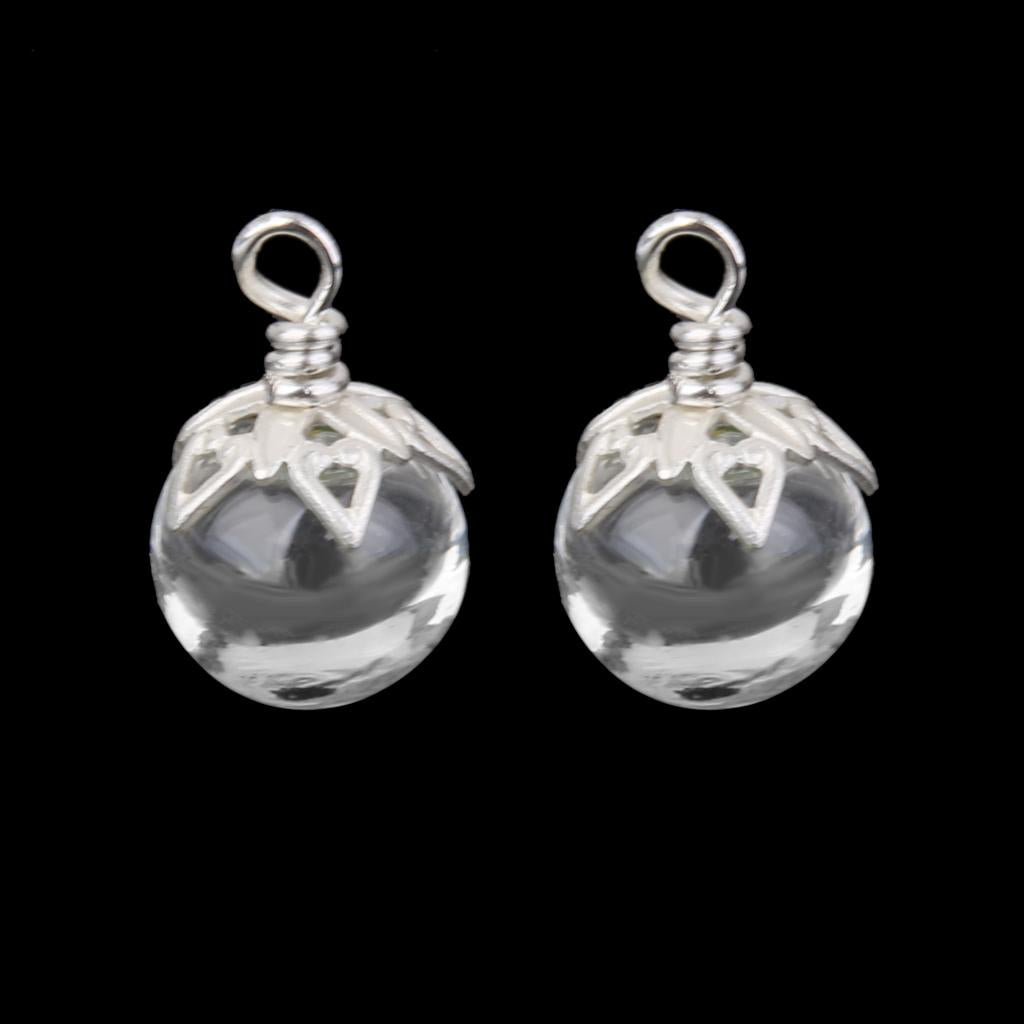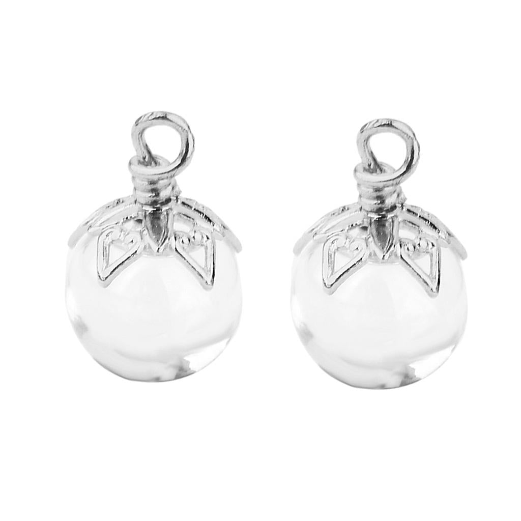 2Pcs Mini Glass Bottle Jars Vials Wishing Bottle Pendant Silver Flower Cap