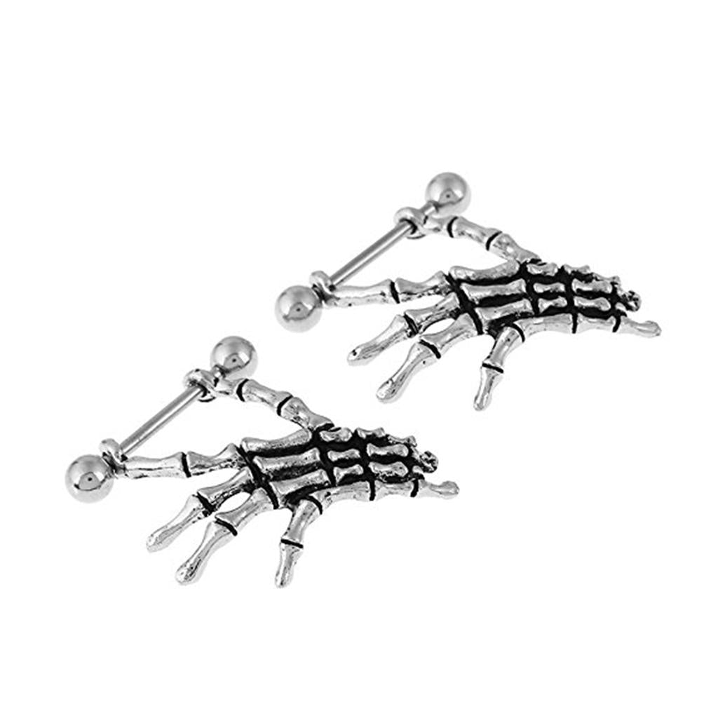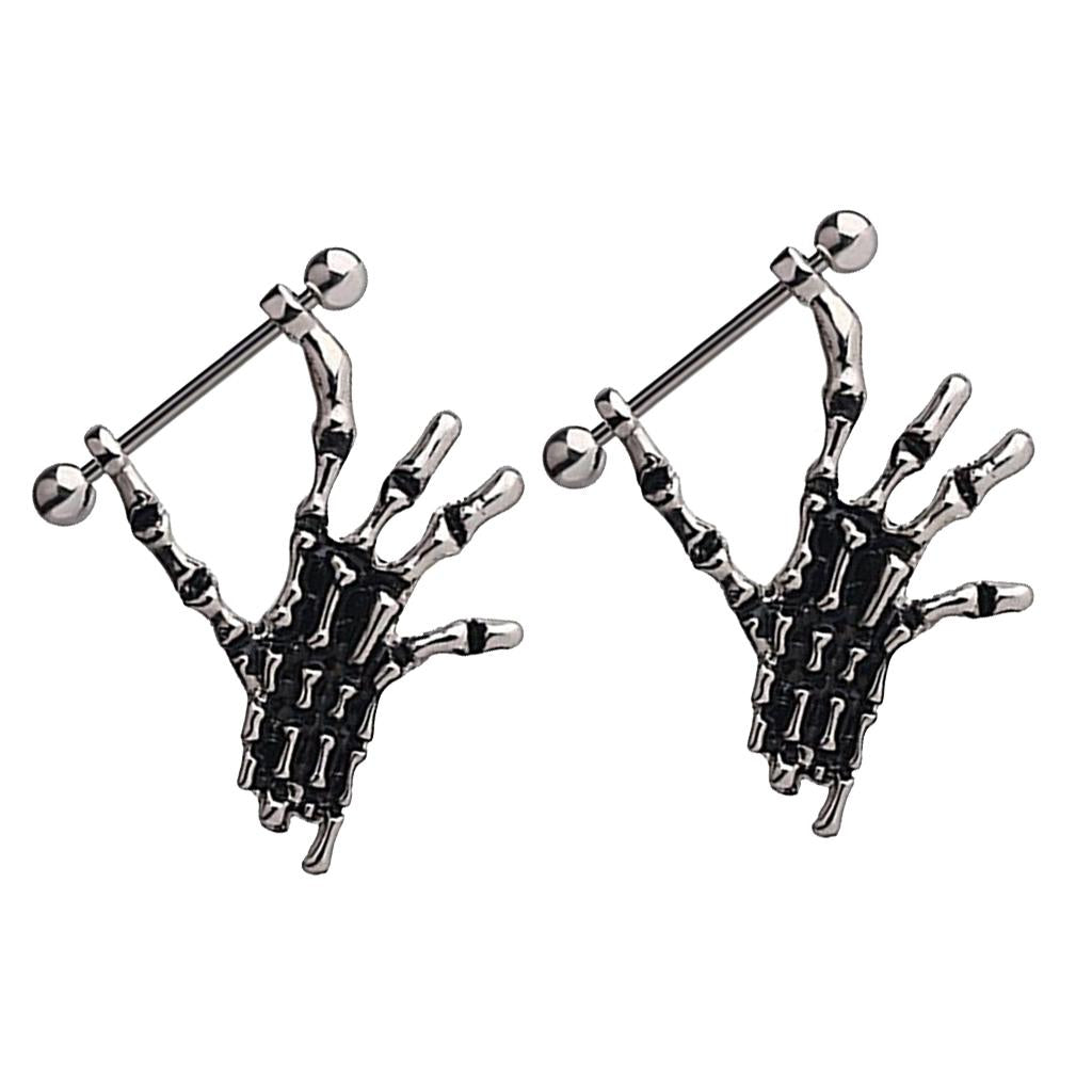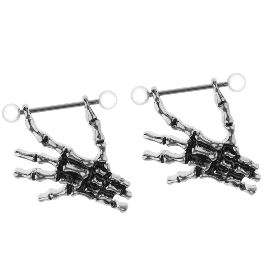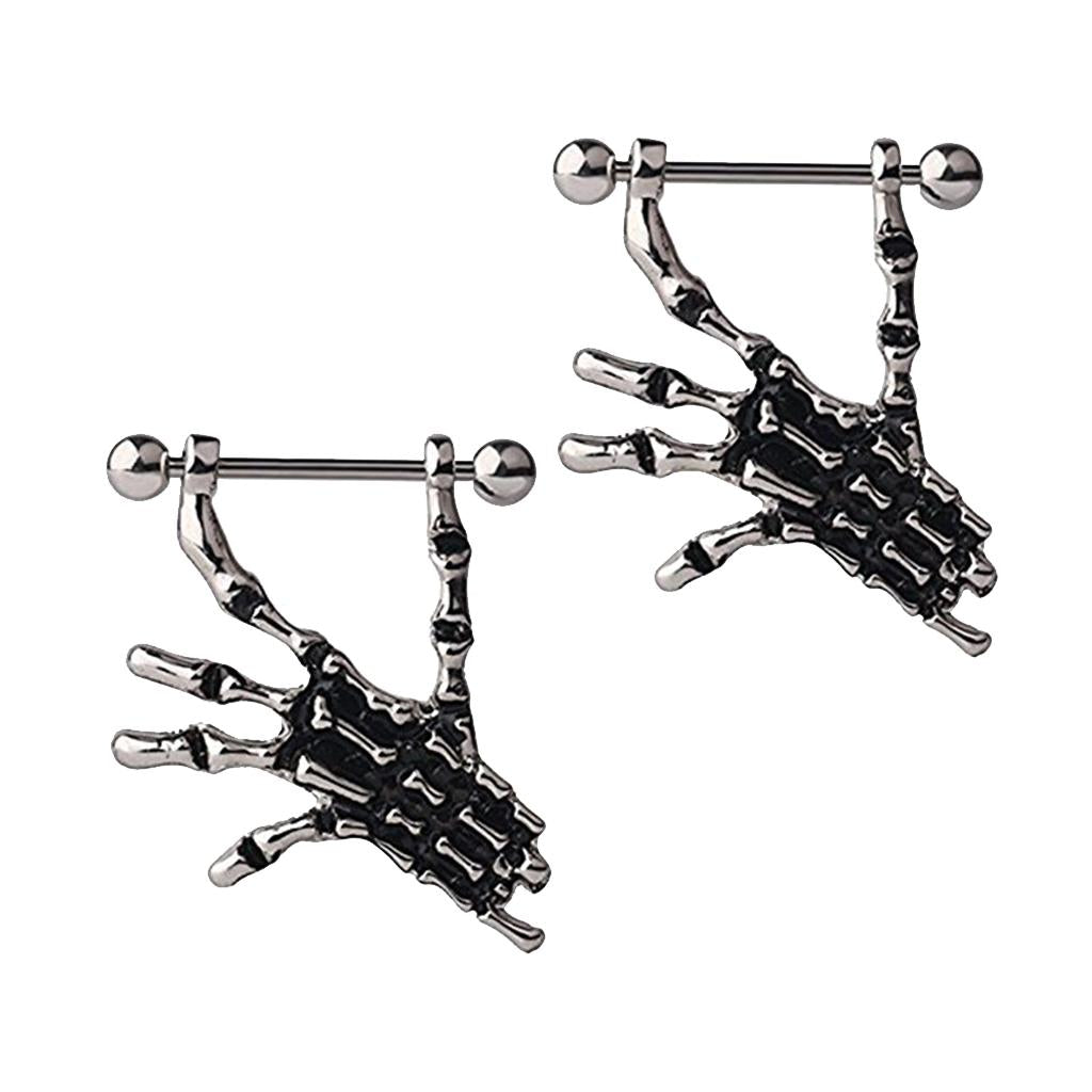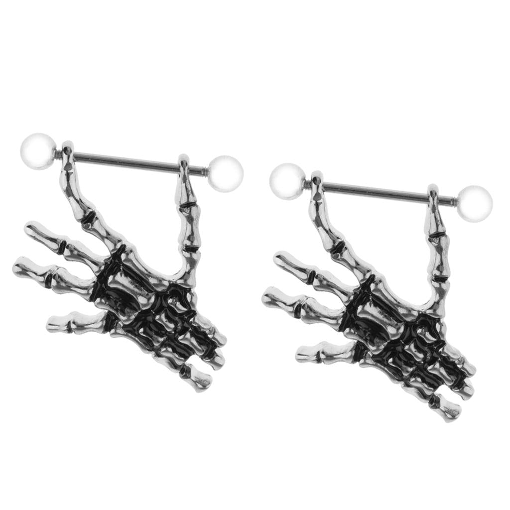 2pcs Punk Skeleton Hand Skull Dangle 18G Nipple Bars Barbells Piercing Rings